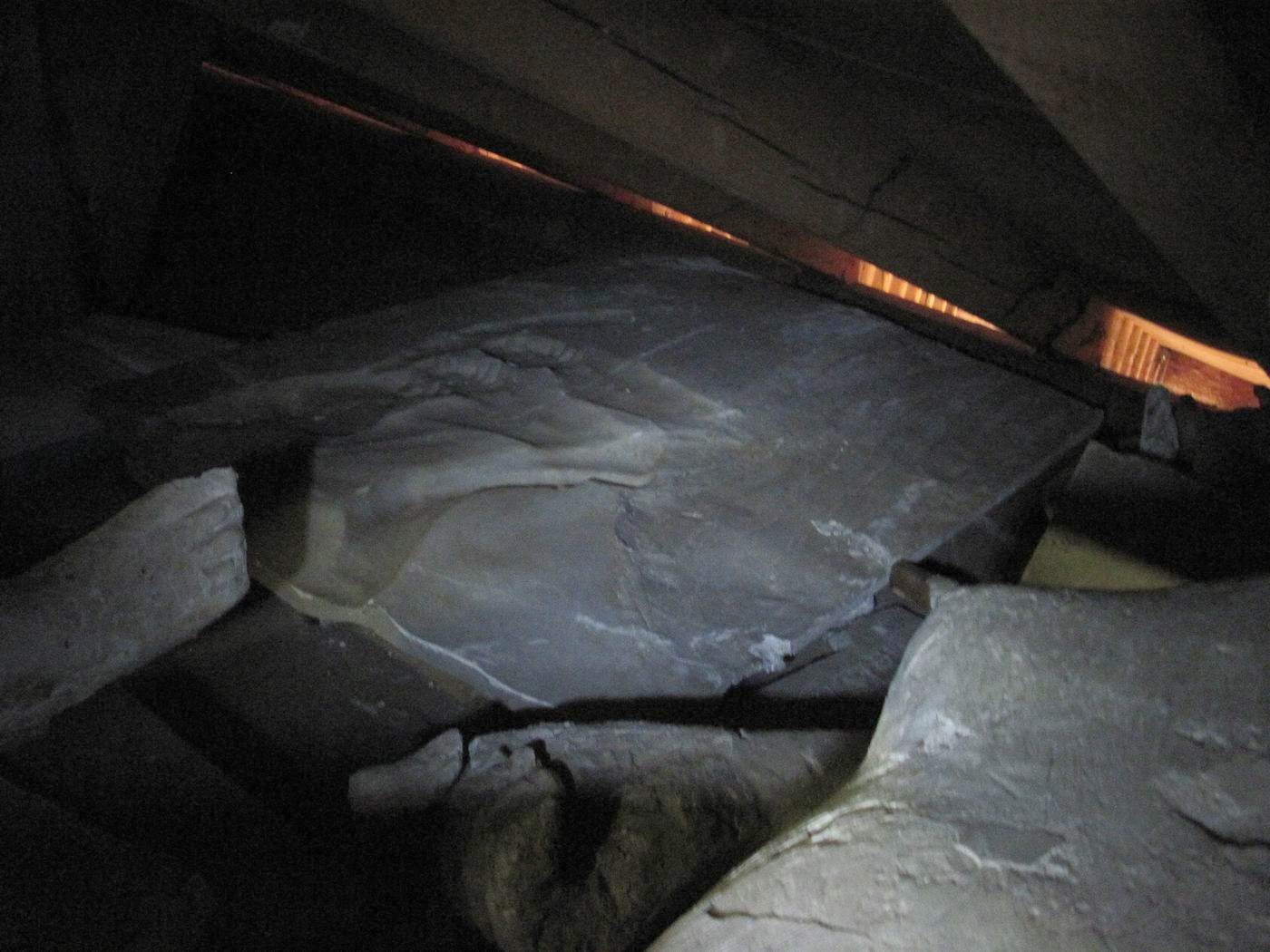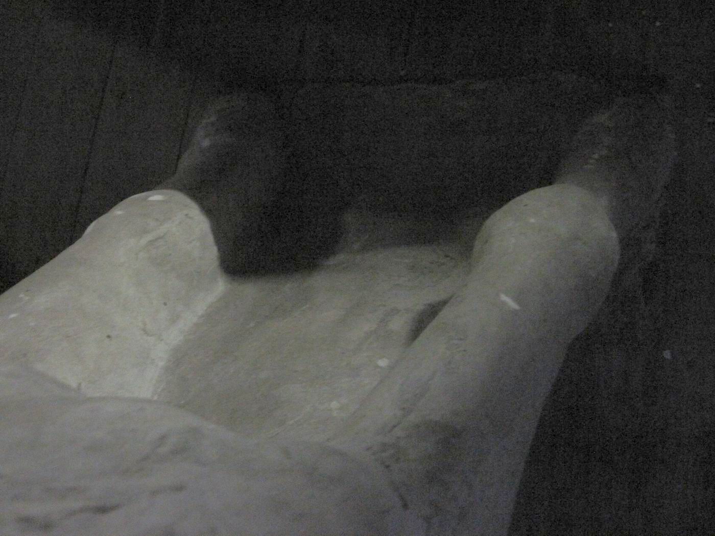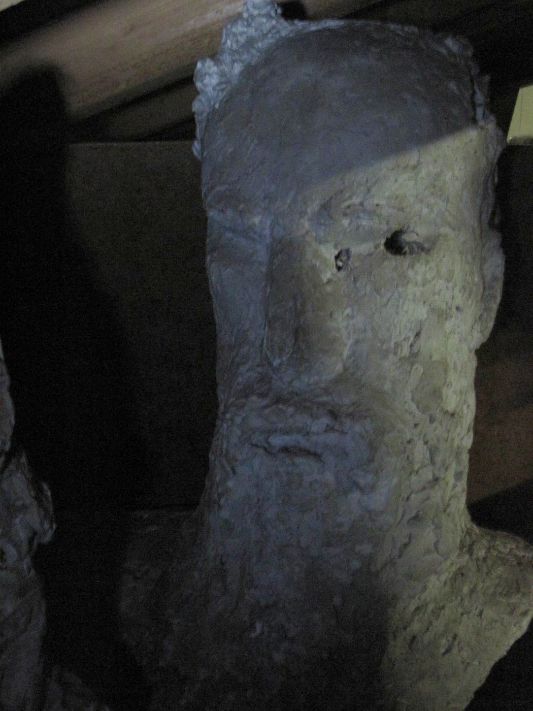 | Nach Aussage eines Mitarbeiters der Betreiberorganisation des Depots mussten die kopflosen Figuren im Auftrage des für die Einlagerung verantwortlichen Behördenfunktionärs des Einlagerungskantons vom genannten Mitarbeiter geköpft und die Köpfe dem Auftraggeber ausgehändigt werden. Nachforschungen haben ergeben, dass die behördliche Funktion, welche der genannte Funktionär inne zu haben angegeben hatte oder dritte für ihn angegeben hatten, damals gar nicht existiert hat und dass daher die gemachte Vorgabe einer behördlichen Funktion gar nicht Rechtens war. Nach Auskunft einer juristisch gebildeten Person lag hier mutmaßlich so etwas wie "Amtsaneignung" oder "Aneignung einer staatlichen Funktion" vor. Jedenfalls sind die vormals vorhandenen Köpfe der Gips-Modelle (Abguss-Vorlagen) heute abgeschnitten und zusammen mit weiteren Figuren verschwunden. Es ist zu vermuten, dass so etwas in einem Rechtsstaate nicht ohne Konsequenzen möglich gewesen wäre. Ein weiterer Kommentar ist nicht möglich, da der Autor dieses Textes nicht alle notwendigen Informationen erhalten konnte. Jedenfalls kann hier kaum von "fachgerechter Aufbewahrung von Werken eines großen Künstlers geredet werden. (Hinweis: Die gezeigten Fotos sind teilweise nachbearbeitet. Insbesondere sind Firmenaufschriften auf dem Verpackmaterial der mit den Gipsfiguren gelagerten Waren mitsamt den Verpackungen wegretuschiert, um hier keine Werbung für Firmen oder Produkte zu machen und auch um den Gips-Modellen die zentrale Stellung in den Bildern nicht zu entziehen.) | ||