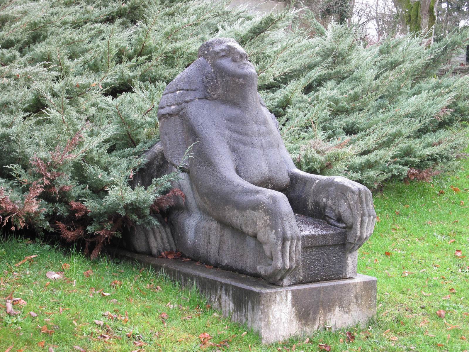 Jakob Probst, 1916, zwei Sphinxen vor dem Krematorium Biel-Bienne