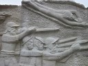 1948: "Schlachtdenkmal sowie Eingangsfiguren zur Klosterkirche", vor den Kloster beim Bahnhof, Dornach, CH, Gesamtversion (Sehr groß! Länge = 22 m) In 2 Teilversionen: |
