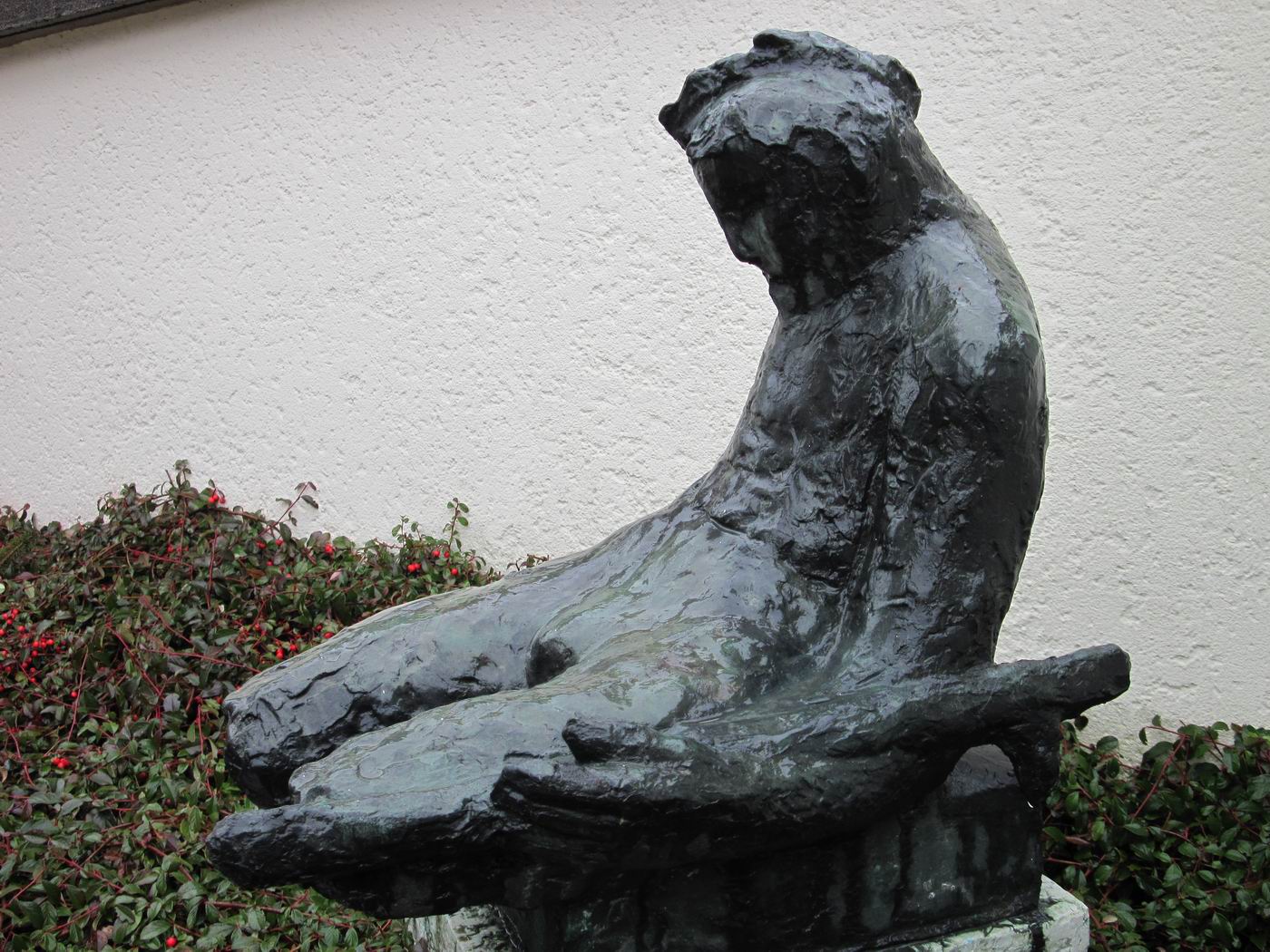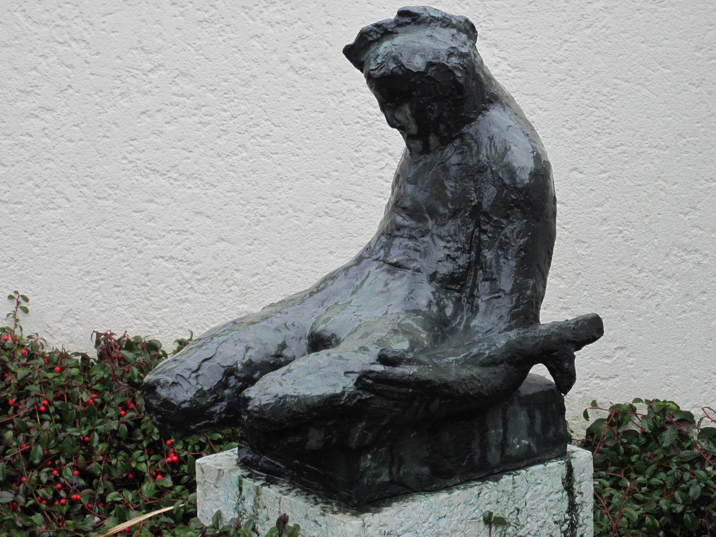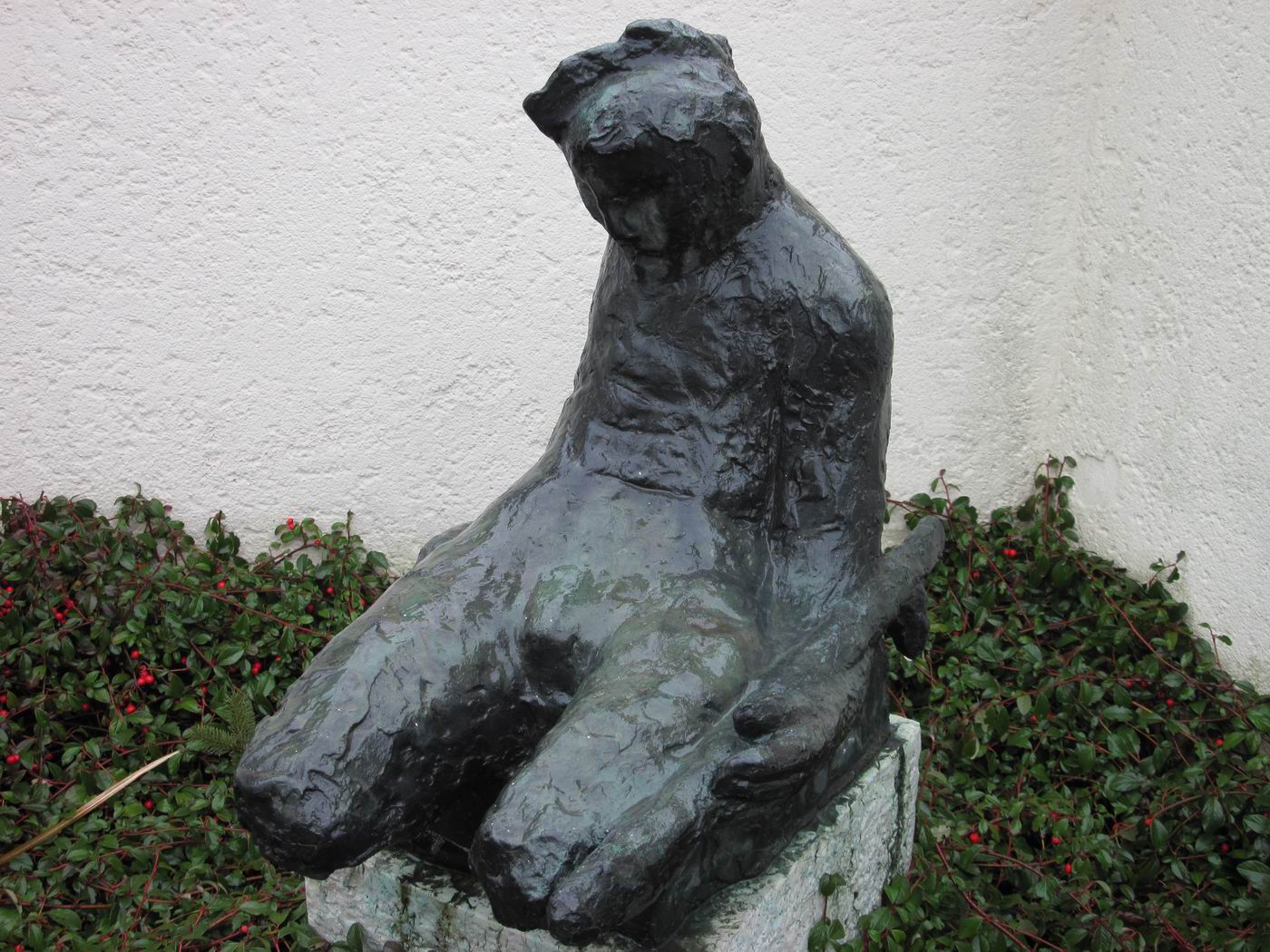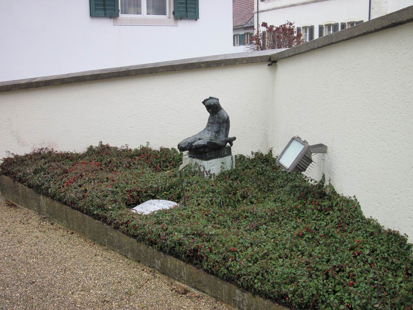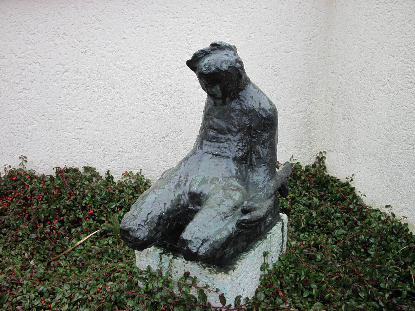 Jakob Probst, 1956, "Sterbender Krieger" (Kriegerdenkmal) für die Schlacht bei Dornach, in der Umfriedung der alten Mauritiuskirche, Dornach