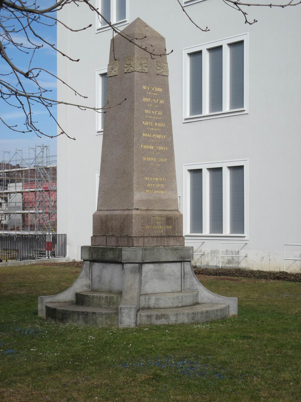 Die durch Bildhauer Holliger in den Stein eingemeißelte Inschrift lautet: