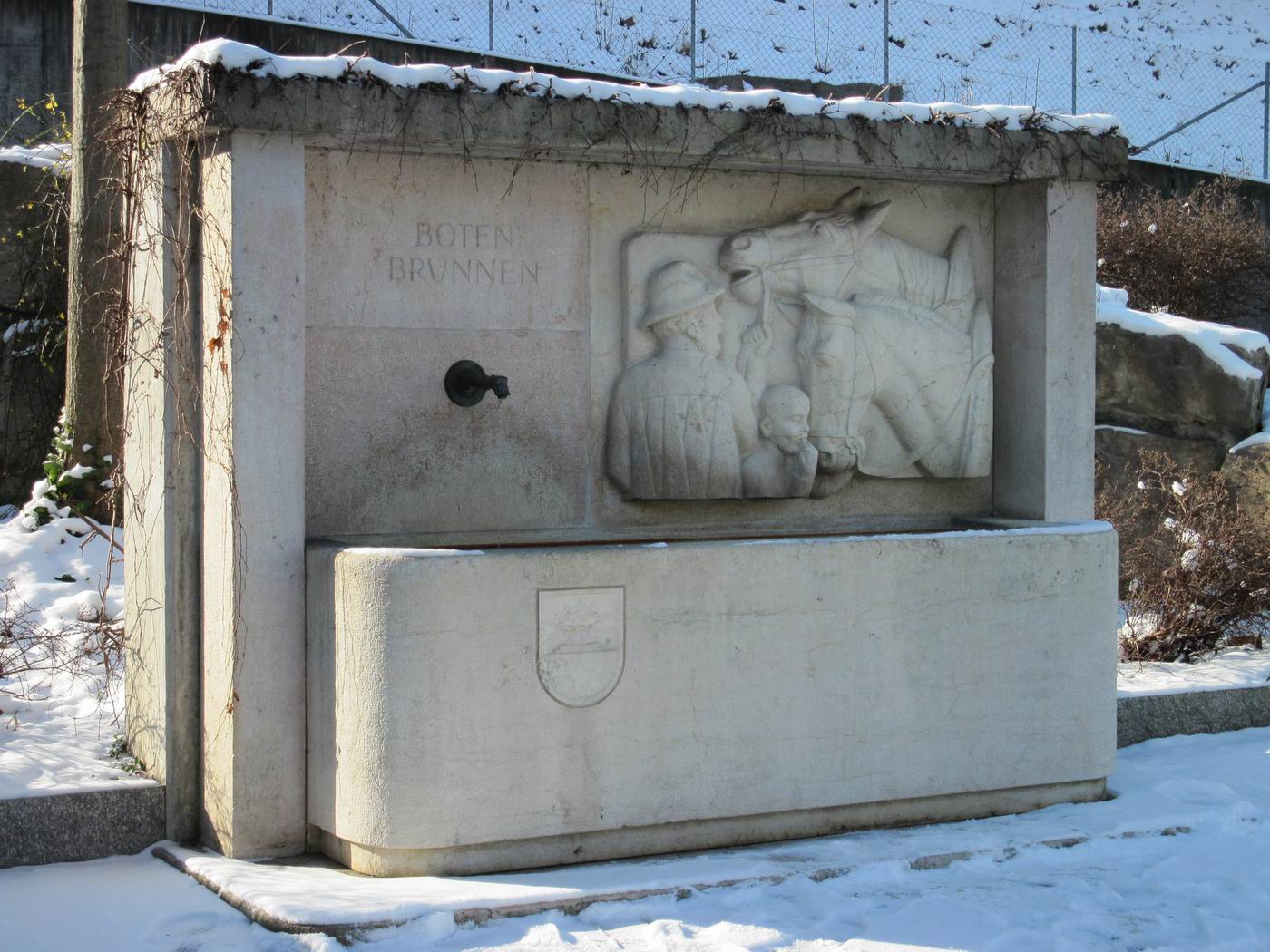(Vor 1998 war der Botenbrunnen als "Teil des Bauernkriegsdenkmals" genannt, heute ist er isoliert zum Werkhof versetzt...)