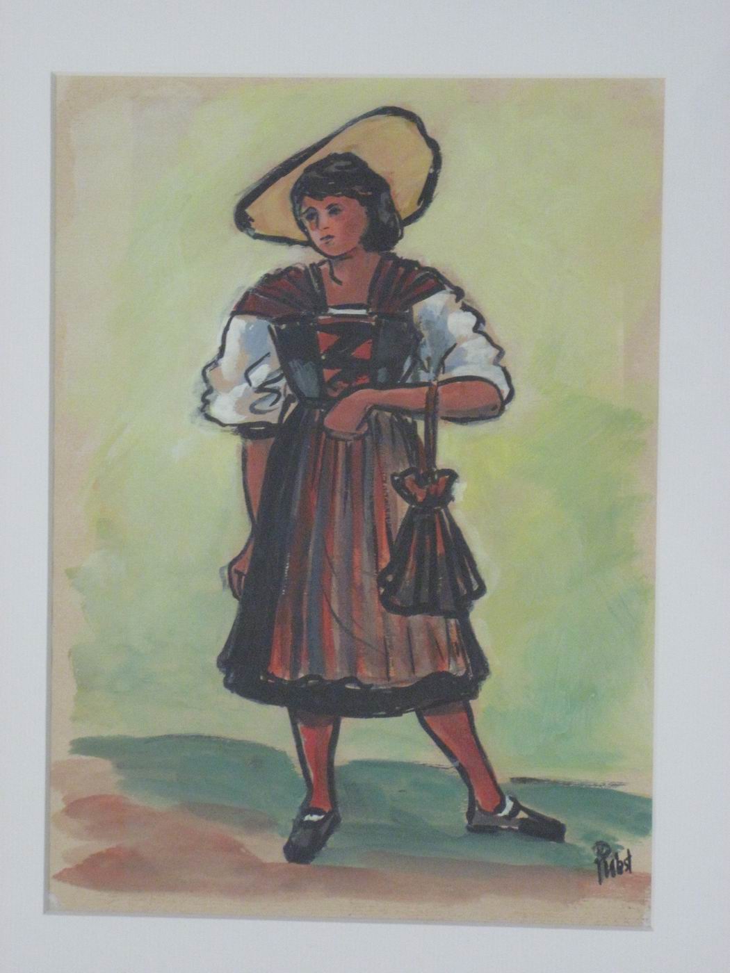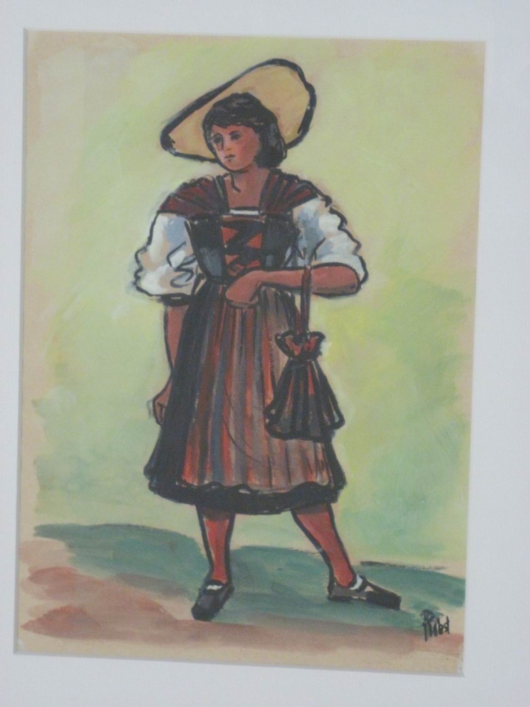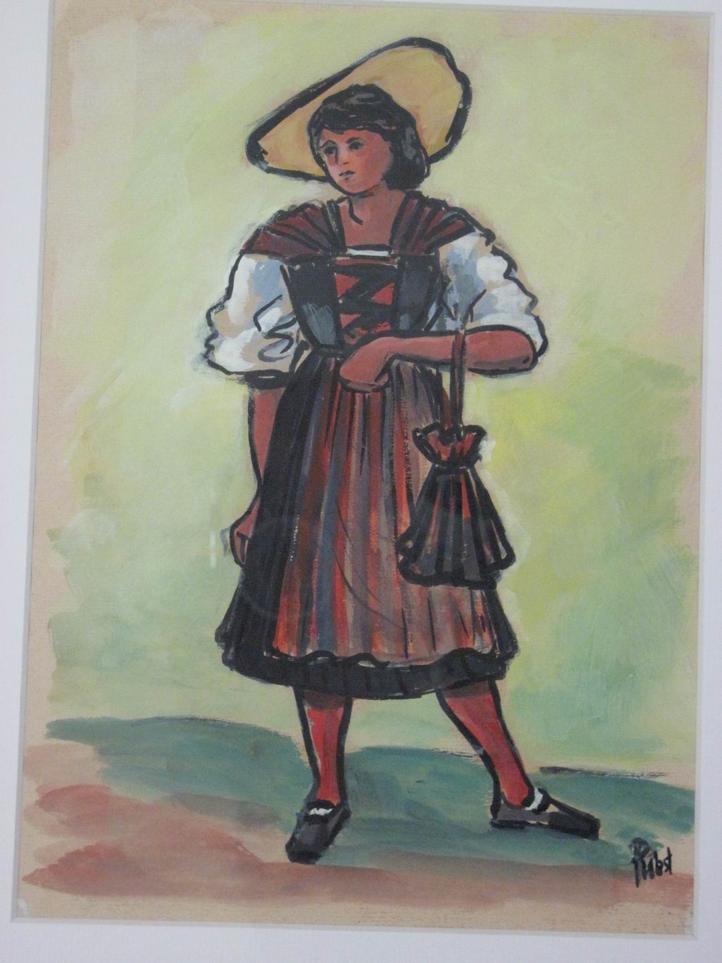 Außer der Unterschrift findet man auf dem gezeigten Blatt keine Angaben. Die gezeigte Tracht könnte aus dem Schwarzwald oder dem Laufental stammen, aber auch, mit anderem Hut, aus Riehen oder Bettingen bei Basel. Und gewiss auch von anderswo her. |
