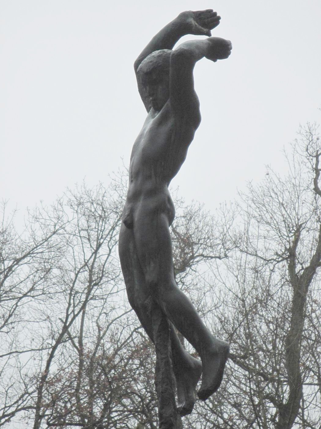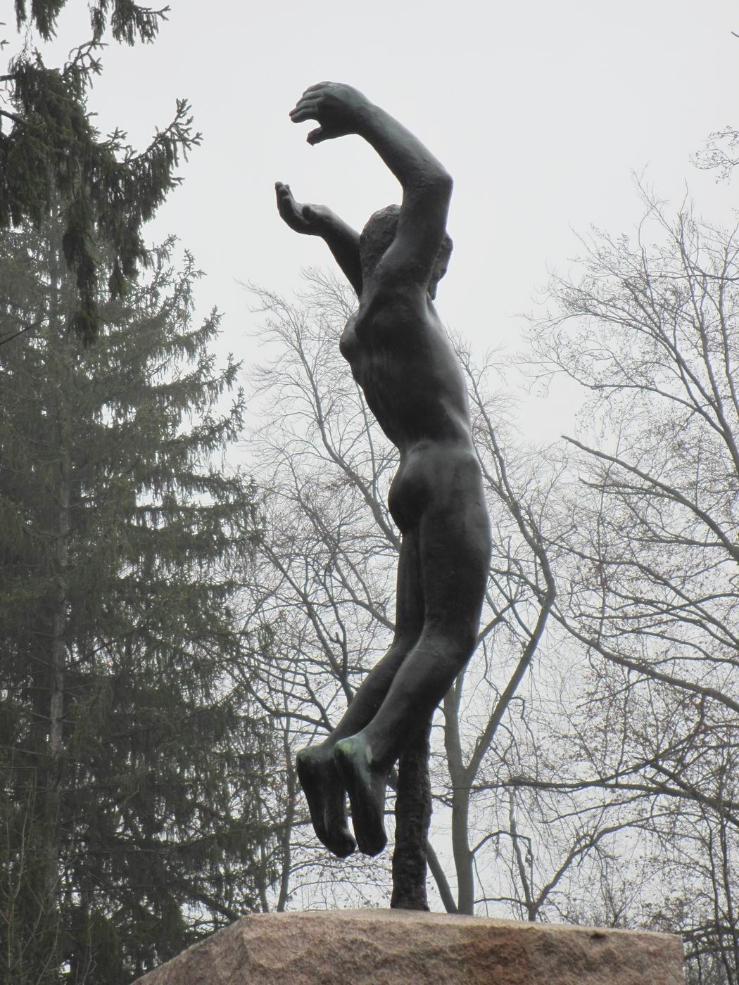 Genius - oder der Fliegende - und der Feuergott (in Stein): Als Schmuck einer Gedenkstätte und auch als Bild des Künstlers: Er schwebt zwischen Himmel und Erde, zwischen Kunst und Realität. An einer Gedenkstätte lässt es die Anwesenheit der Seele oder der Psyche eines dahingeschiedenen Menschen empfinden, mit der Wortwahl je nach dem eigenen Verstehen Hier sehen wir ein großes Meisterwerk! Ursprünglich stand der Genius als Depositum im Garten des Kollegienhauses der Universität Basel. |
