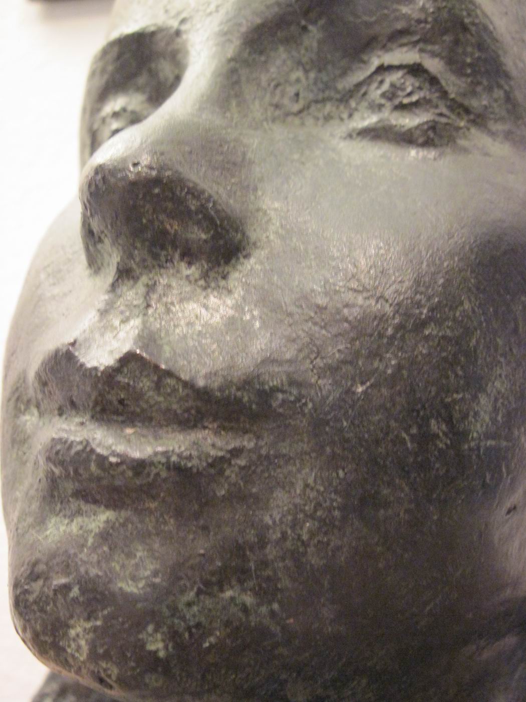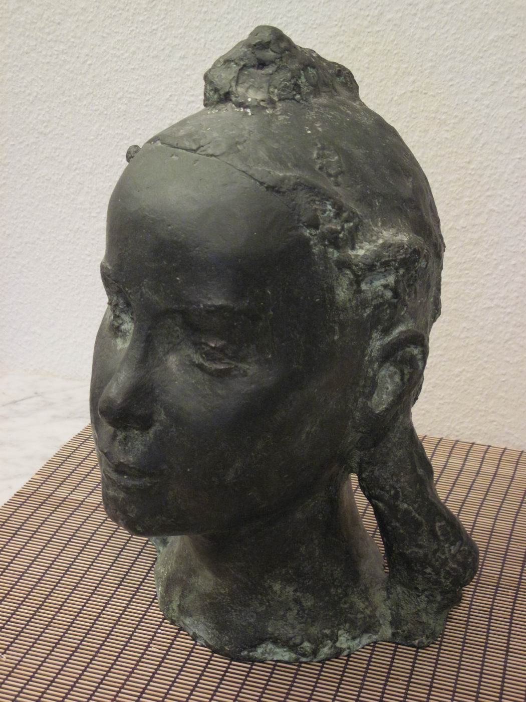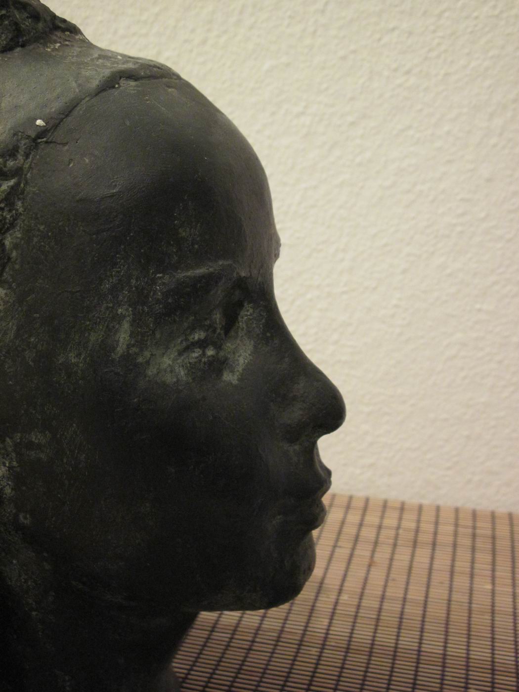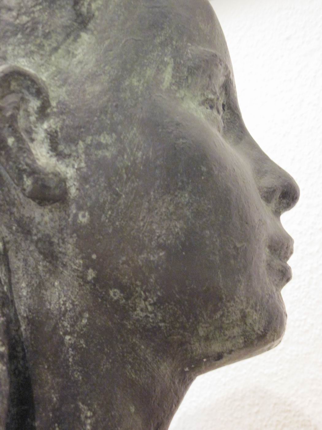 Jakob Probst, vermutl. 1936 (späterer Abguss) oder ev. auch um 1945, Mädchenkopf mit Zöpfen, vom Besitzer "Bettina" genannt, Privatbesitz, Niederalem.CH