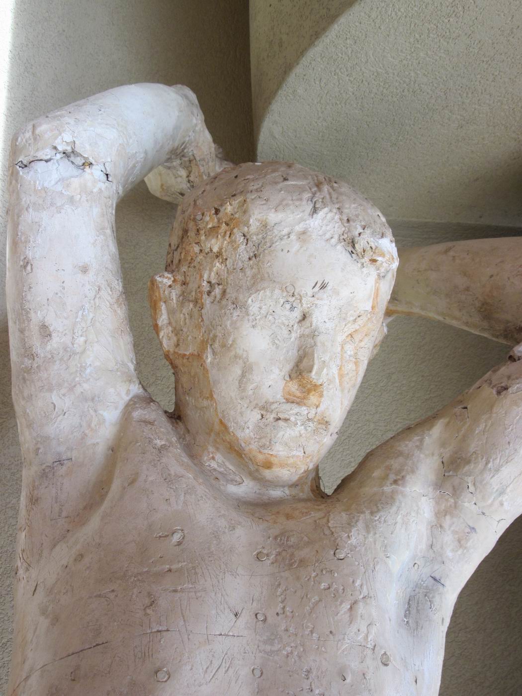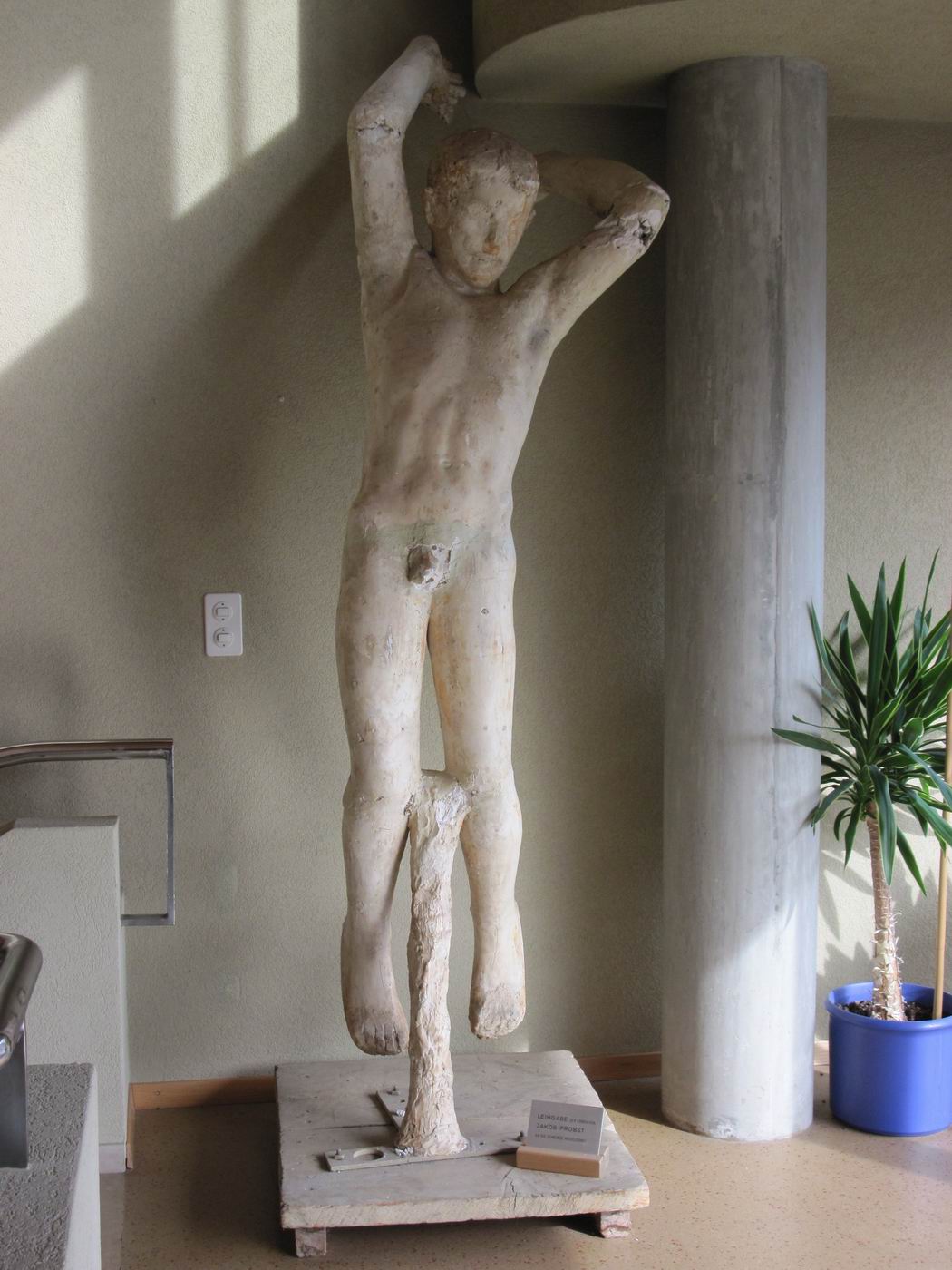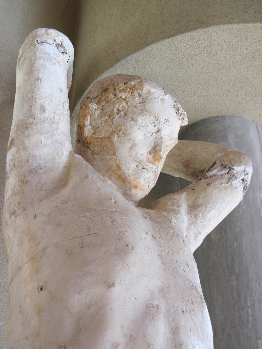 Die Bronze-Plastik Genius - der Fliegende - mit der Skulptur der Feuergott ist aufgestellt als Zentrumsfigur im Friedhof Meisenhard (Krematorium), Olten