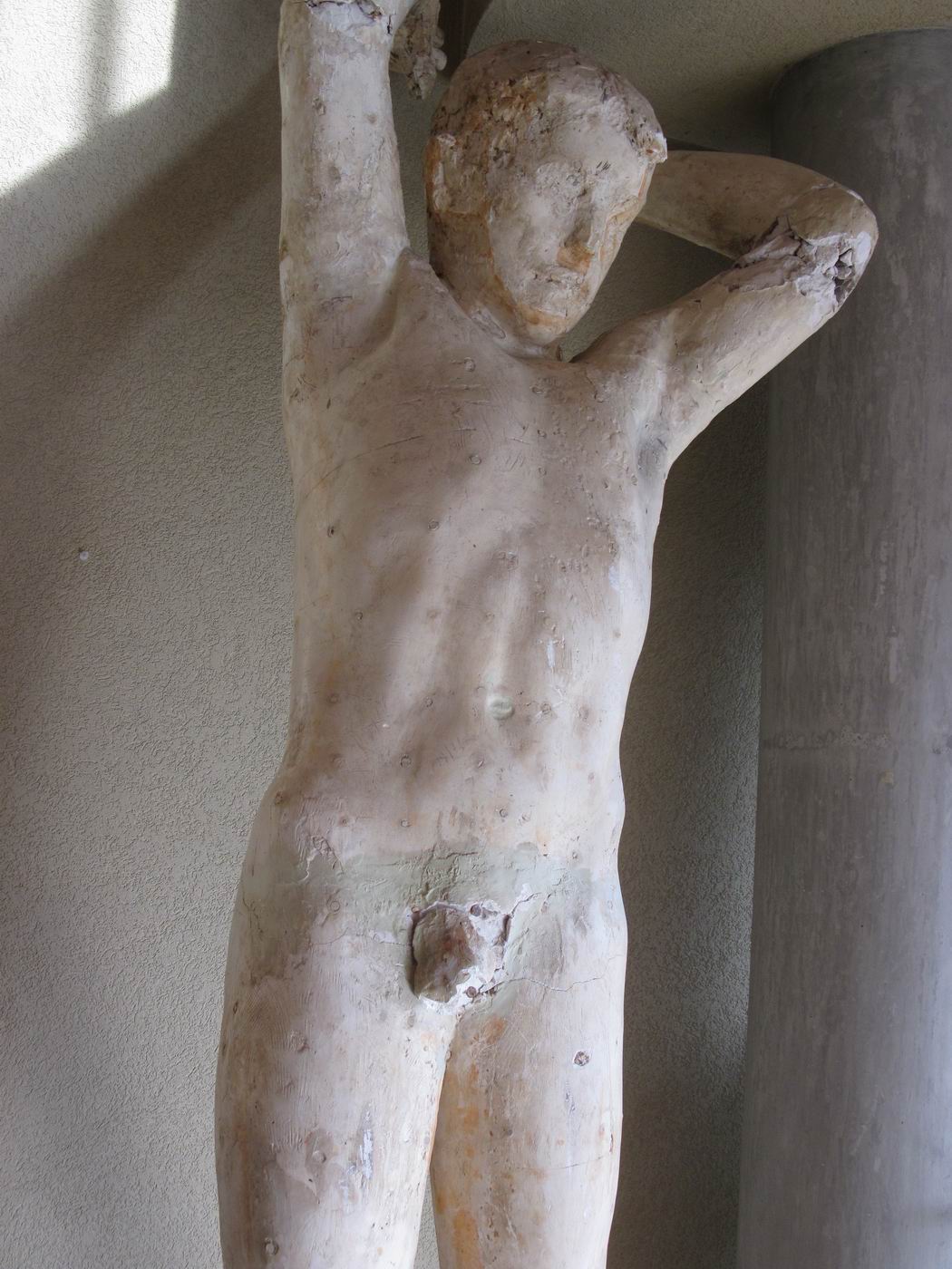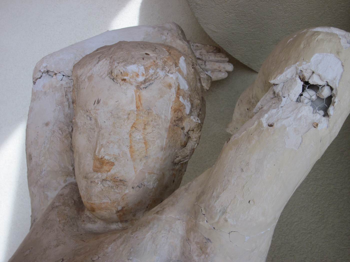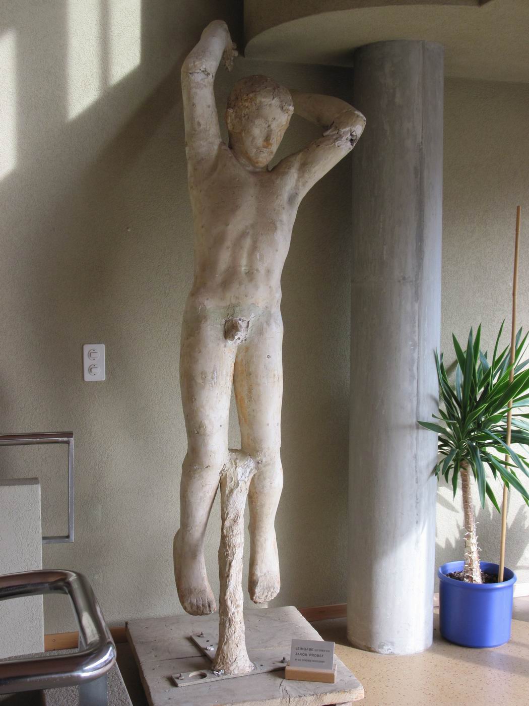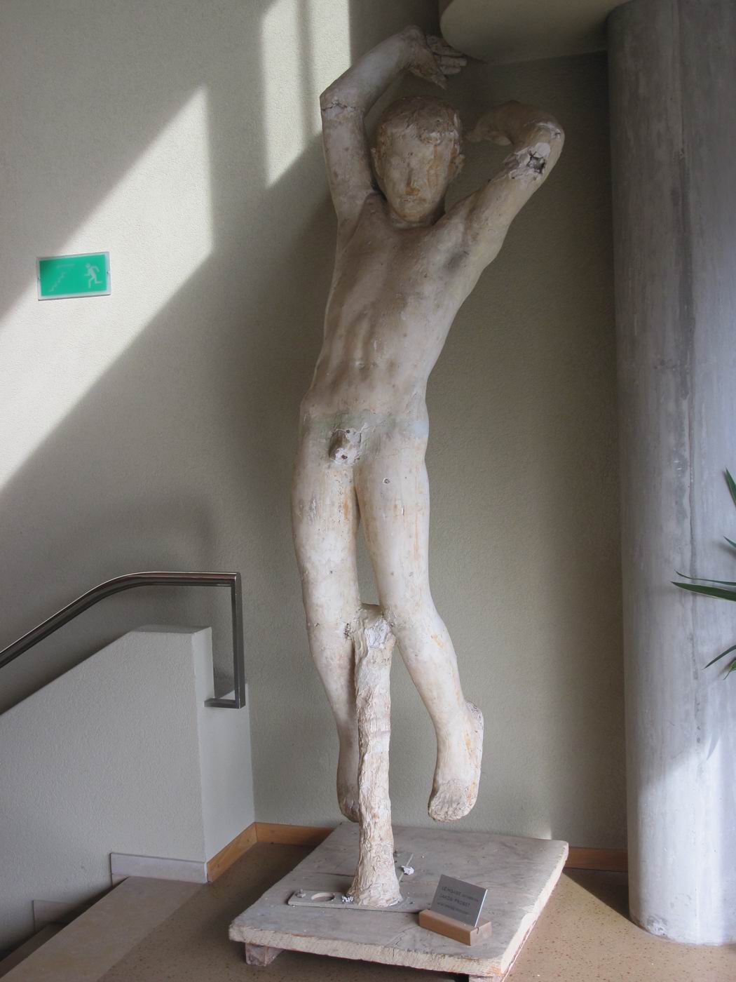 Die Bronze-Plastik Genius - der Fliegende - mit der Skulptur der Feuergott ist aufgestellt als Zentrumsfigur im Friedhof Meisenhard (Krematorium), Olten