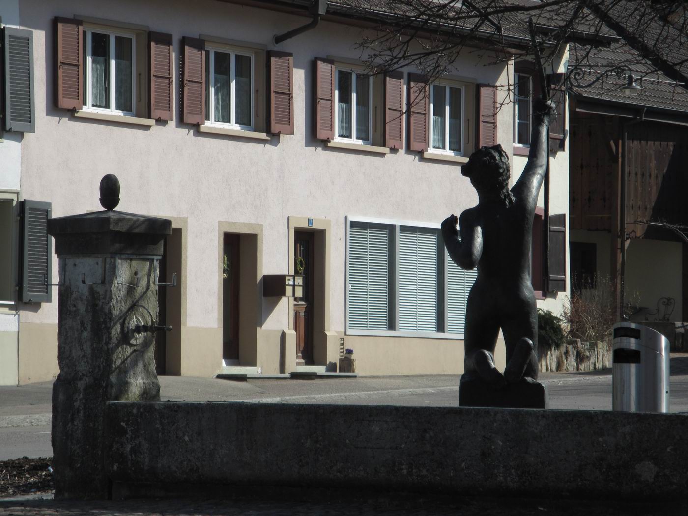 Sie kam nach Aussagen von Leuten aus der Bevölkerung nach 1984 nach Reigoldswil. Jemand hatte die Vermutung geäußert, dass sie vorher im Garten der Universität gestanden hatte - oder auch in Liestal bei der Basellandschaftlichen Hypothekenbank. 1976 stand jedoch die Original-Gipsplastik auf dem Areal jener Basellandschaftlichen Hypothekenbank (Chronik BL). Es könnte sich hier auch um einen späteren Abguss handeln. Diese Plastik ist nicht im Guss, sondern auf einer Zusatztafel signiert bzw. beschriftet. Weiter ist zweifelsfrei Abguss fotografisch bezeugt, welcher (vermutlich um 1980) vor der Regio-Bank in Liestal stand.