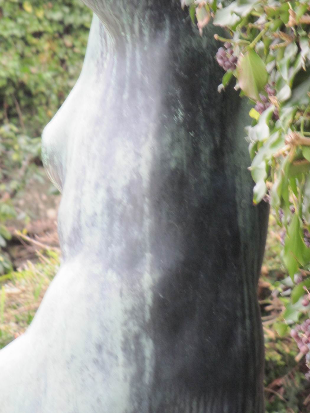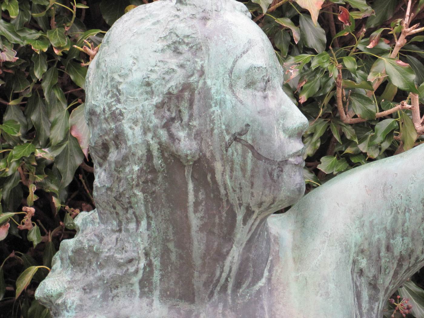 Aus dem einen der Bein wächst noch der Fuß: Sie befindet sich in Verwandlung. Die Hände werden dann kommen. War sie vorher Fisch? Die so unbewegliche, auf das Ende des Geschehens wartende Dame muss einem kindlichen Geiste begegnet sein, der sie in während diesem Geschehen auf seine ihm mögliche Weise versucht hat zu verschönern. Ein Kobold, versteht sich. Schade, denn die untrennbar mit ihrem Ort verknüpften Bilder können nun nicht mehr geändert werden. Der Kobold wollte es so. Kann man solche Wesen nicht erziehen - oder wenigstens an die Leine nehmen - ? |