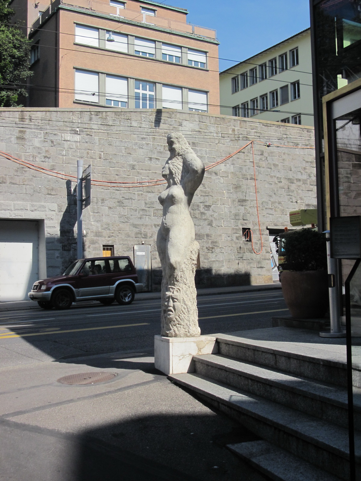 Arnold d’Altri Bei der d’Altris "Mädchen mit der Maske" von 1953 wird man den Eindruck nicht los, dass hier die Idee wie auch die Linienführung weitgehend einigen damals bekannten älteren Probst-Figuren nachempfunden worden sind. Man vergleiche dazu Probsts "Maske IV" (1942) bei Stadttheater Basel im Garten der Kunsthalle sowie Probsts "Elektra" (1939) oder Probsts "Weiblicher Torso" (1923). Trotz der großen Schönheit von d'Altris Figur ist es schade und auch beklagenswert, dass in diesem Falle den in der Schweiz bis heutzutage zugänglichen kunstgeschichtlichen Informationen nur Oberflächliches zu entnehmen ist, so dass die Ideen- und Entstehungsgeschichte, so wie sie präsentiert wird, sehr lücken- oder fehlerhaft sein muss. Wem nützt wohl dieses Verschweigen, dieses an-den-Fakten-Vorbeischauen, das man nur bedauern und beweinen, jedoch nicht entschuldigen kann? |