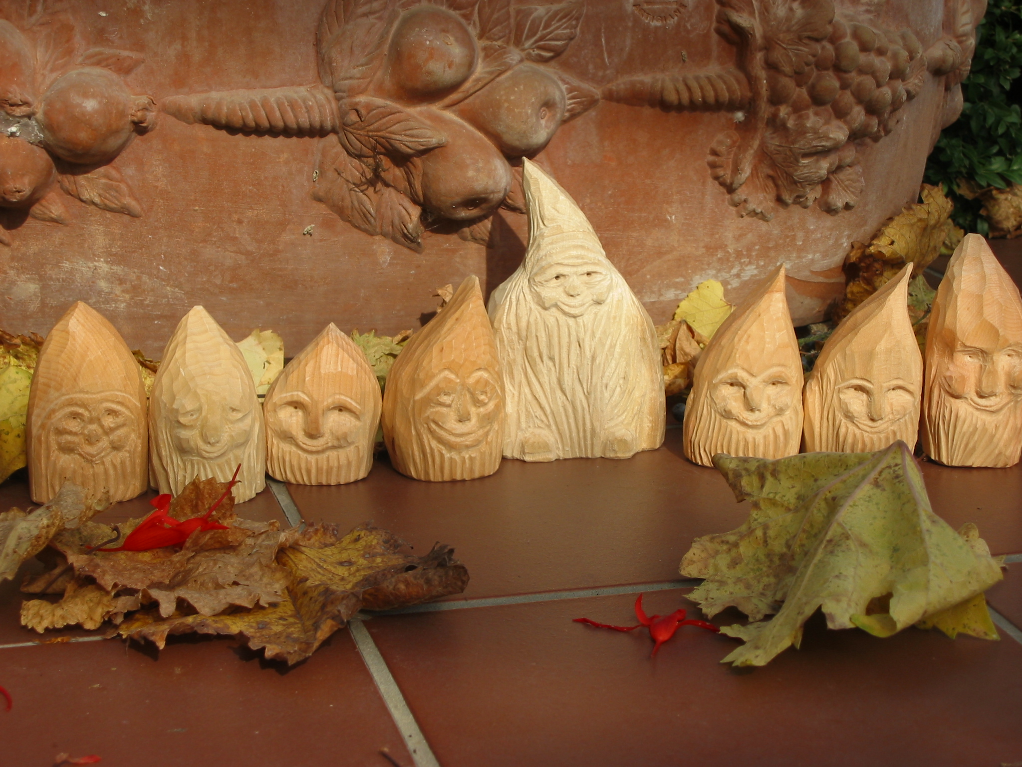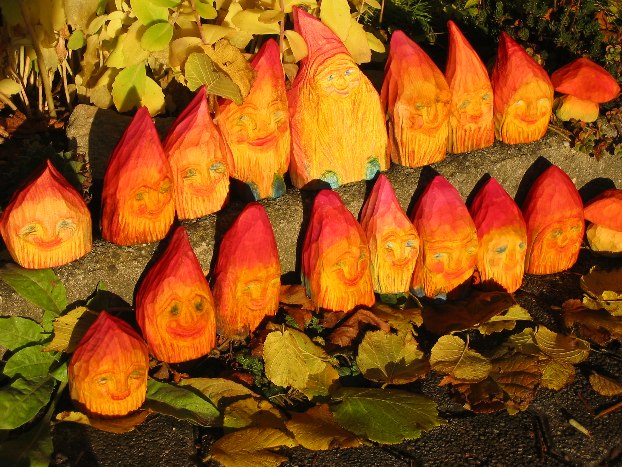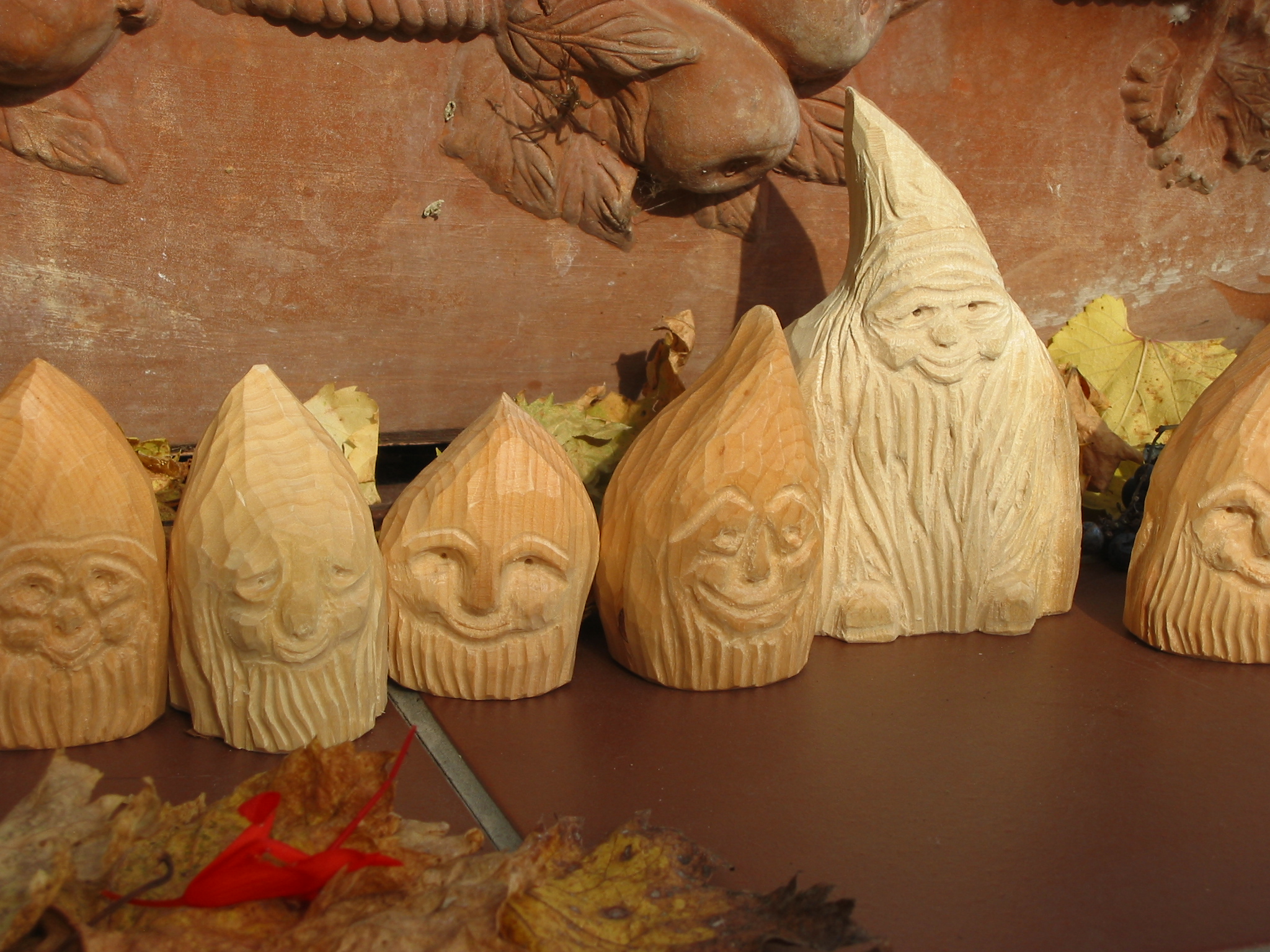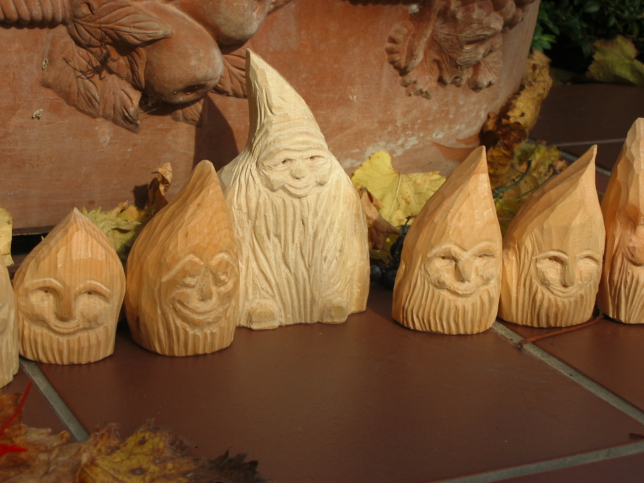 Eine Holzzwergegemeinschaft im Herbst