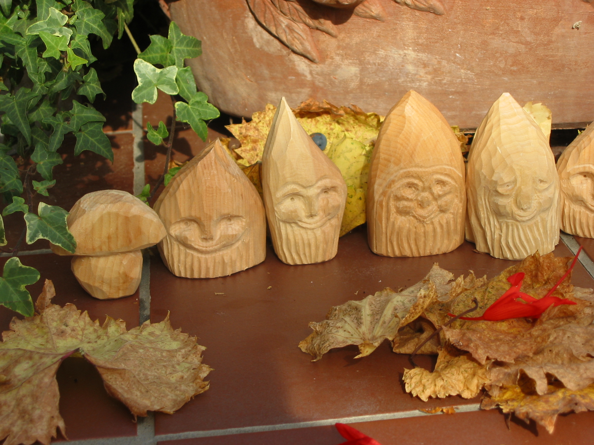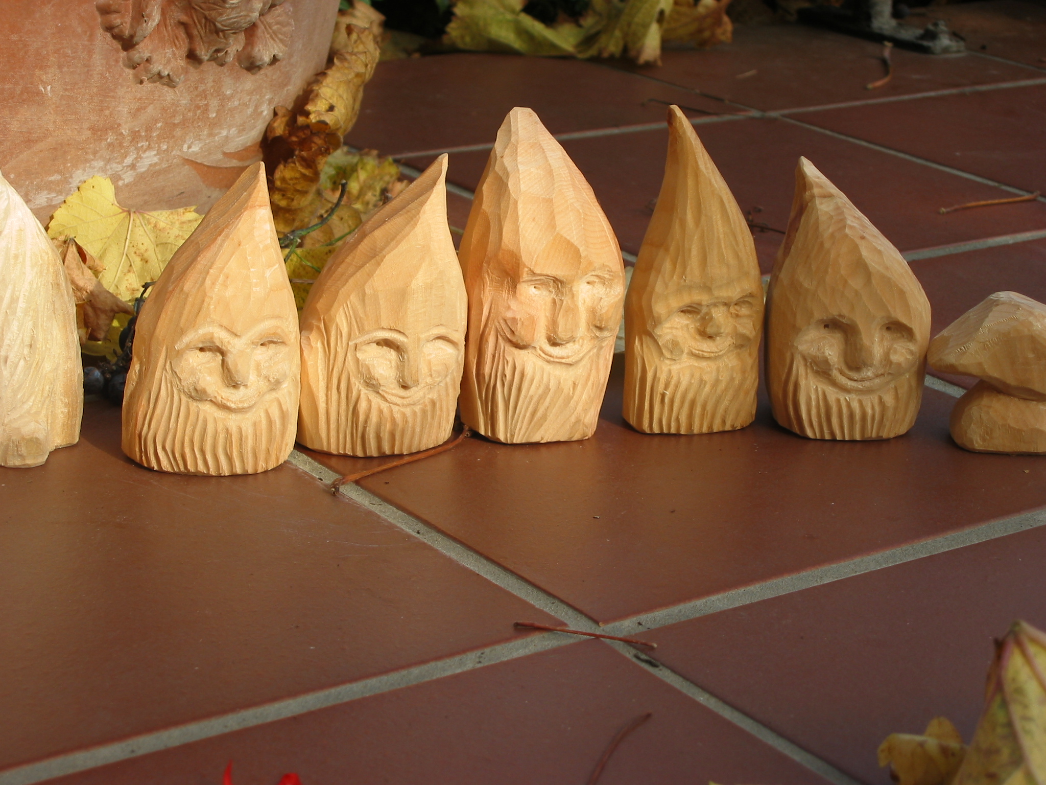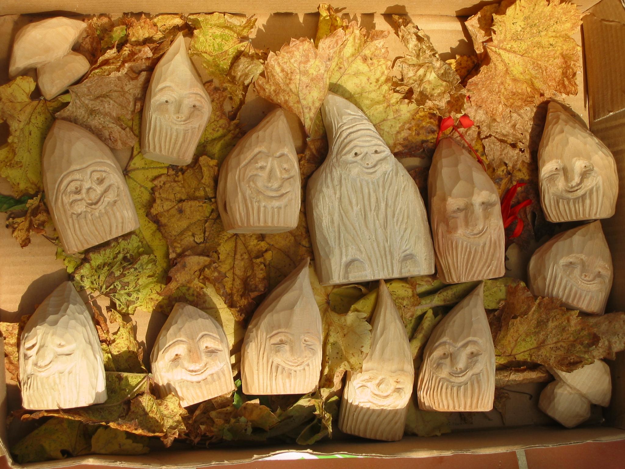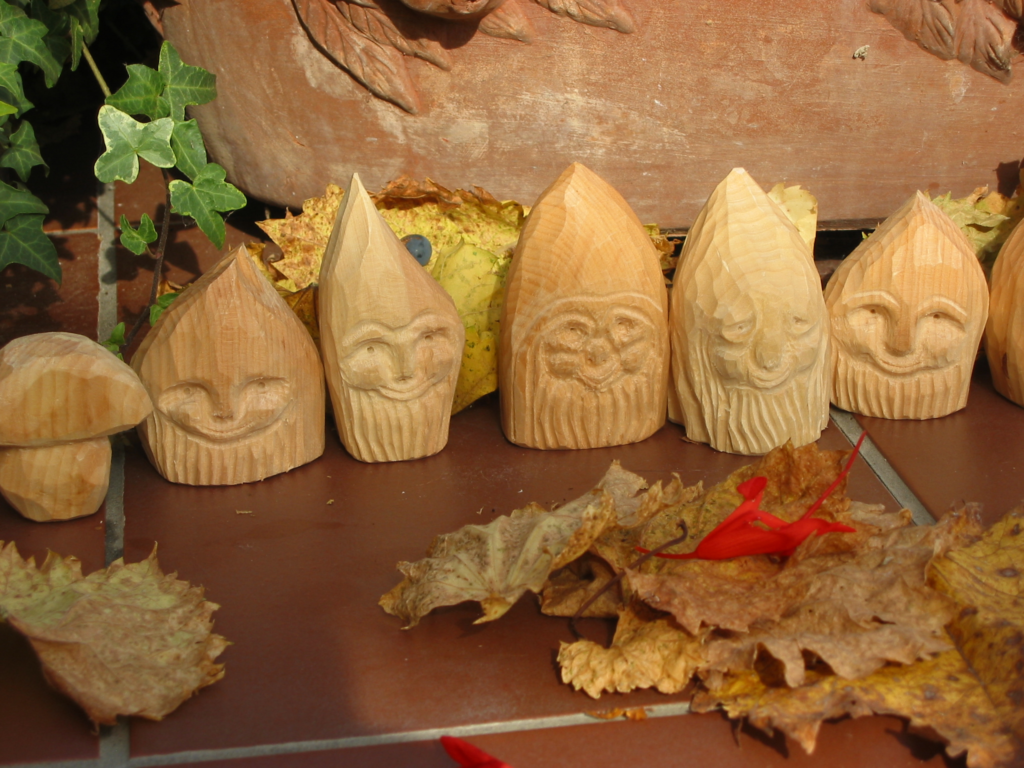 Eine Holzzwergegemeinschaft im Herbst