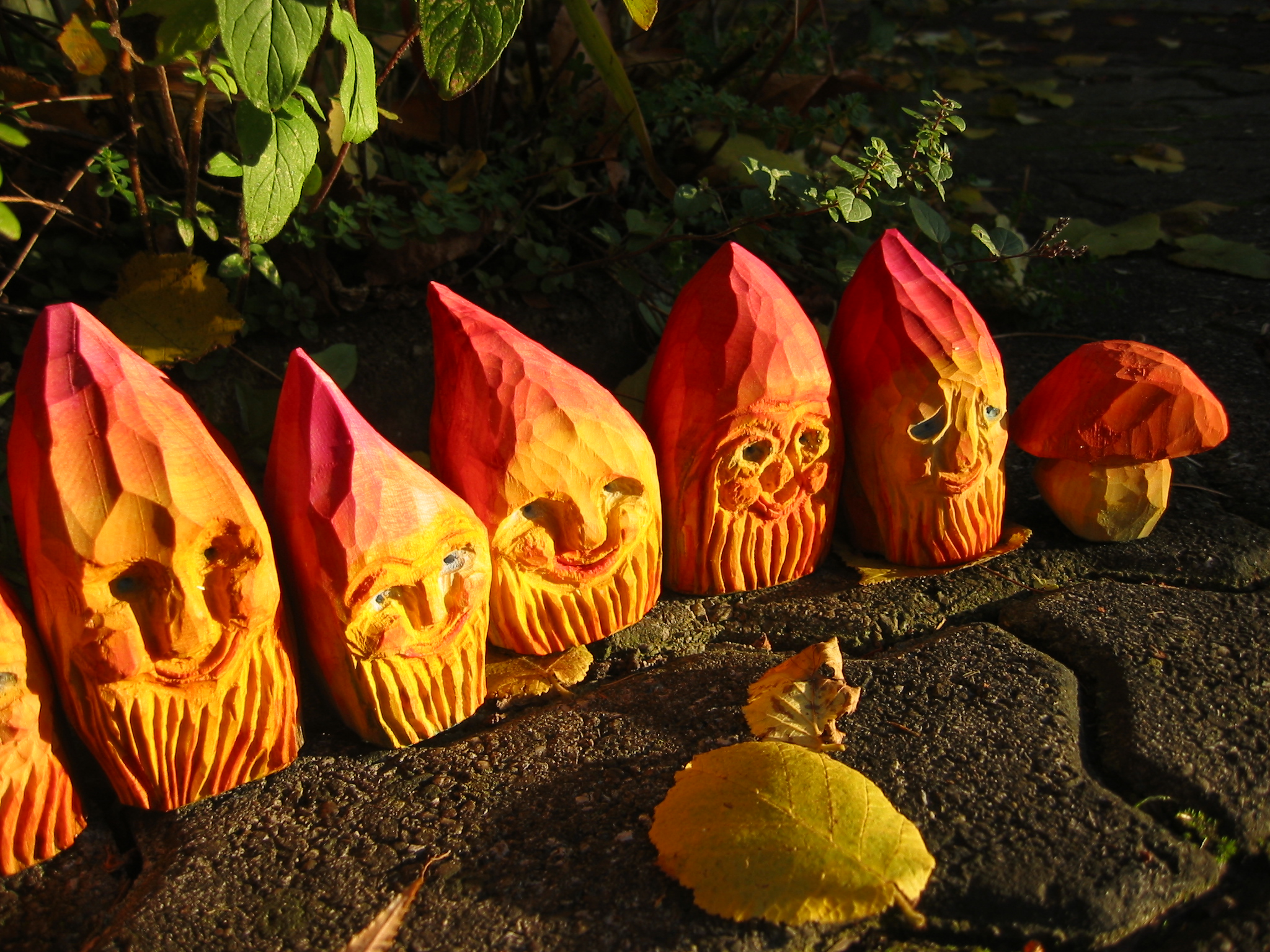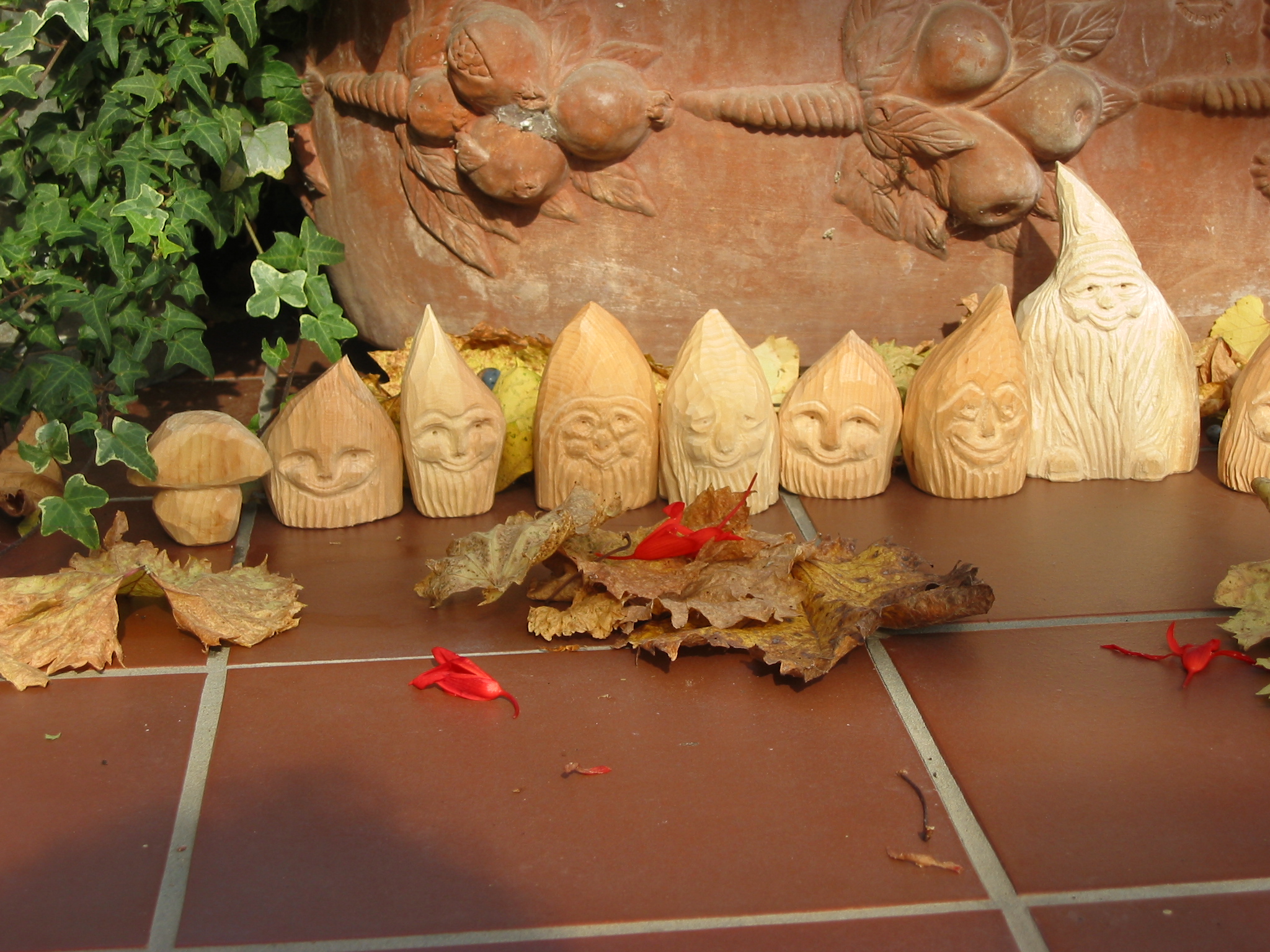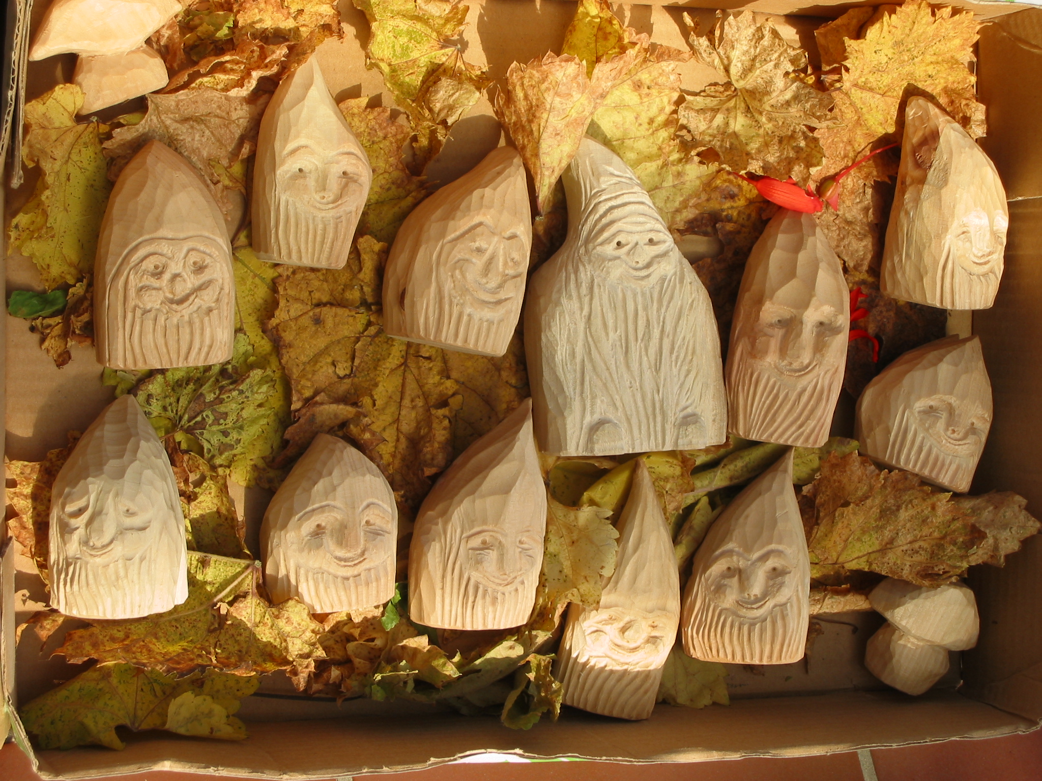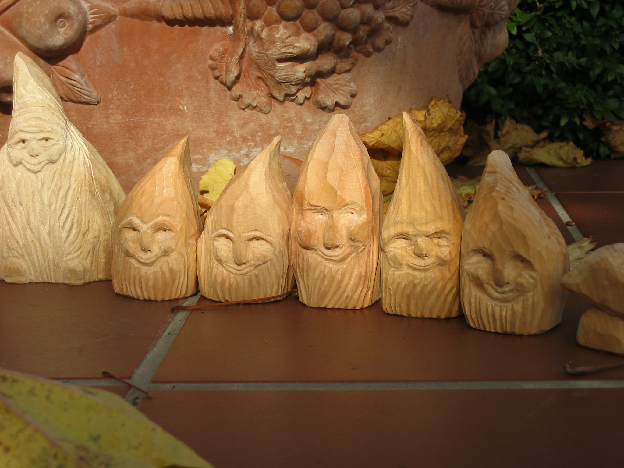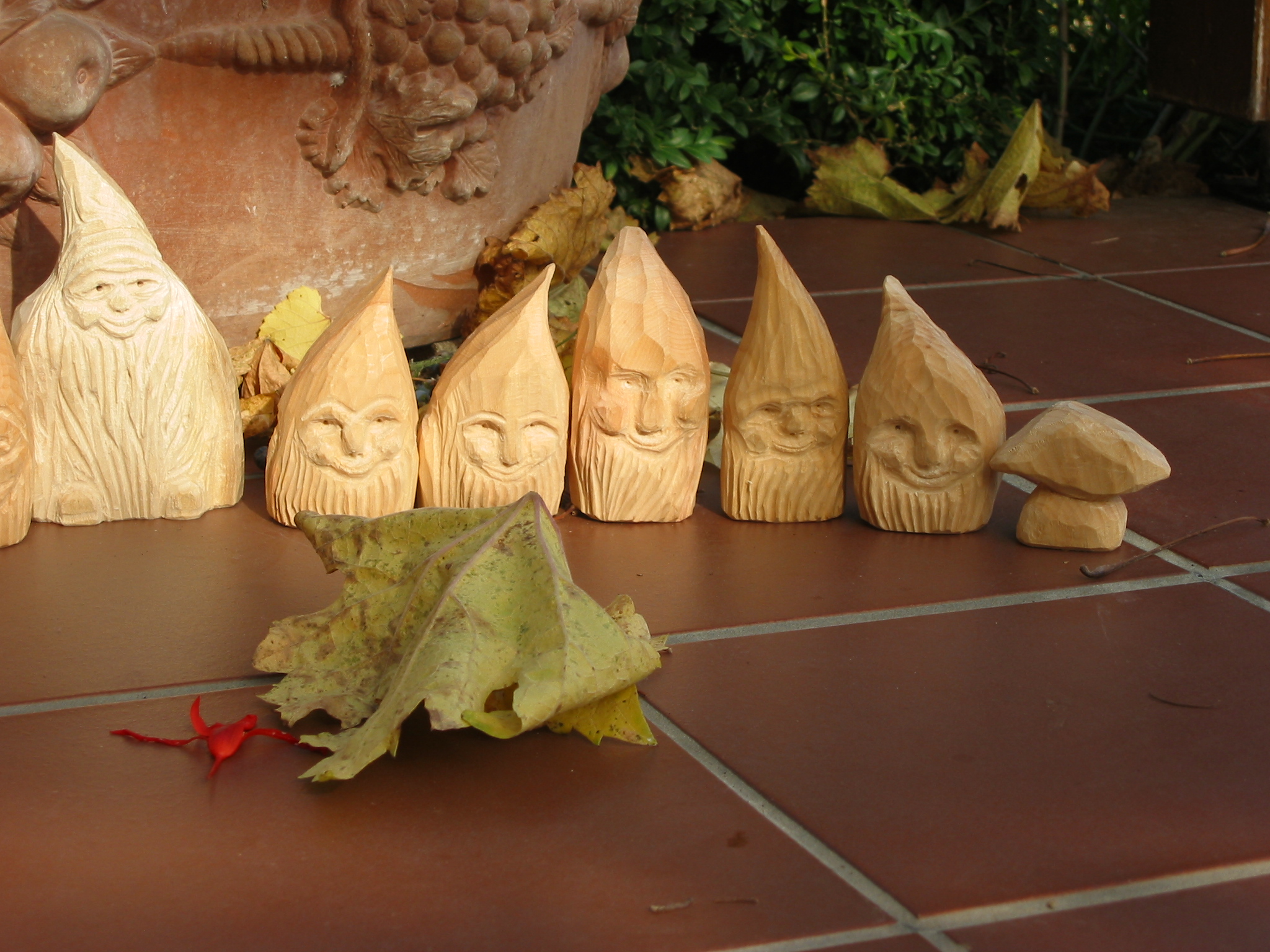 Eine Holzzwergegemeinschaft im Herbst