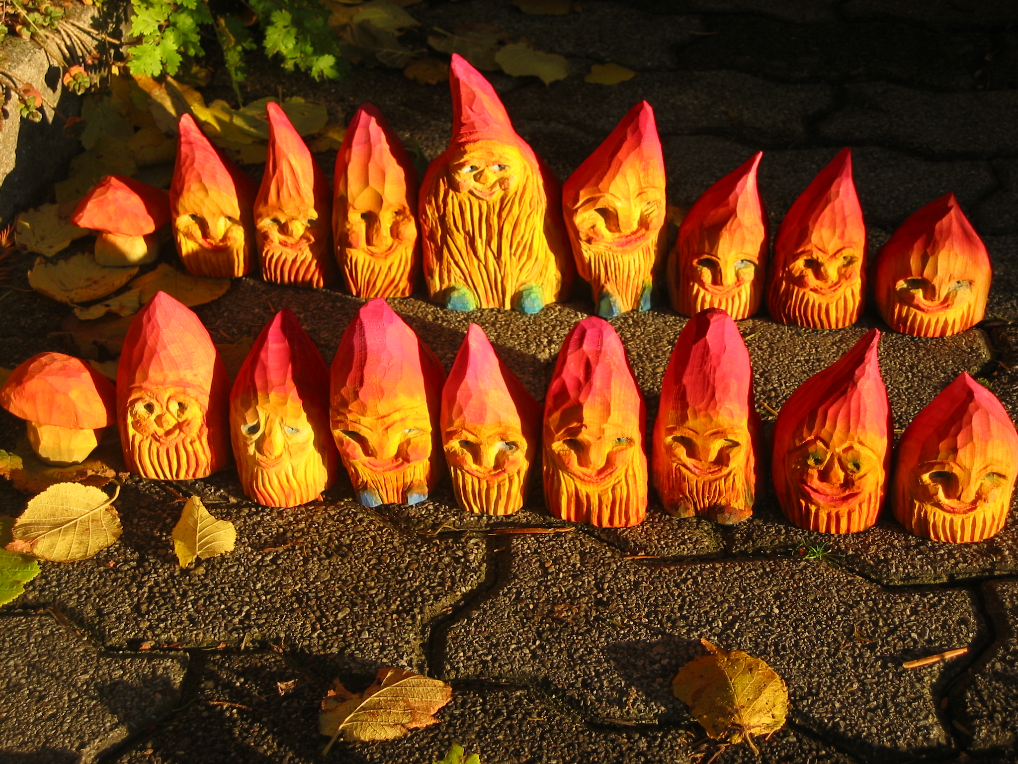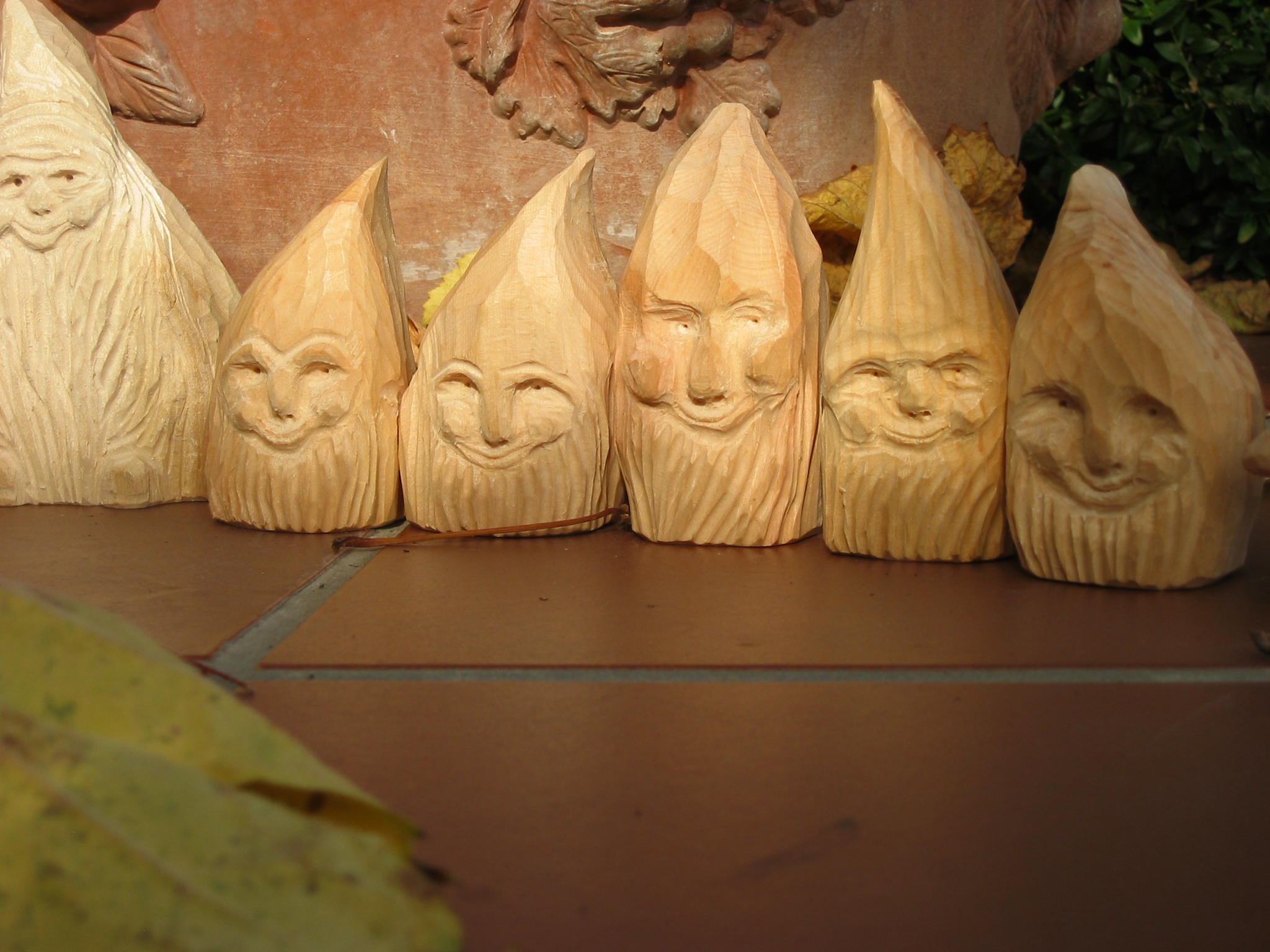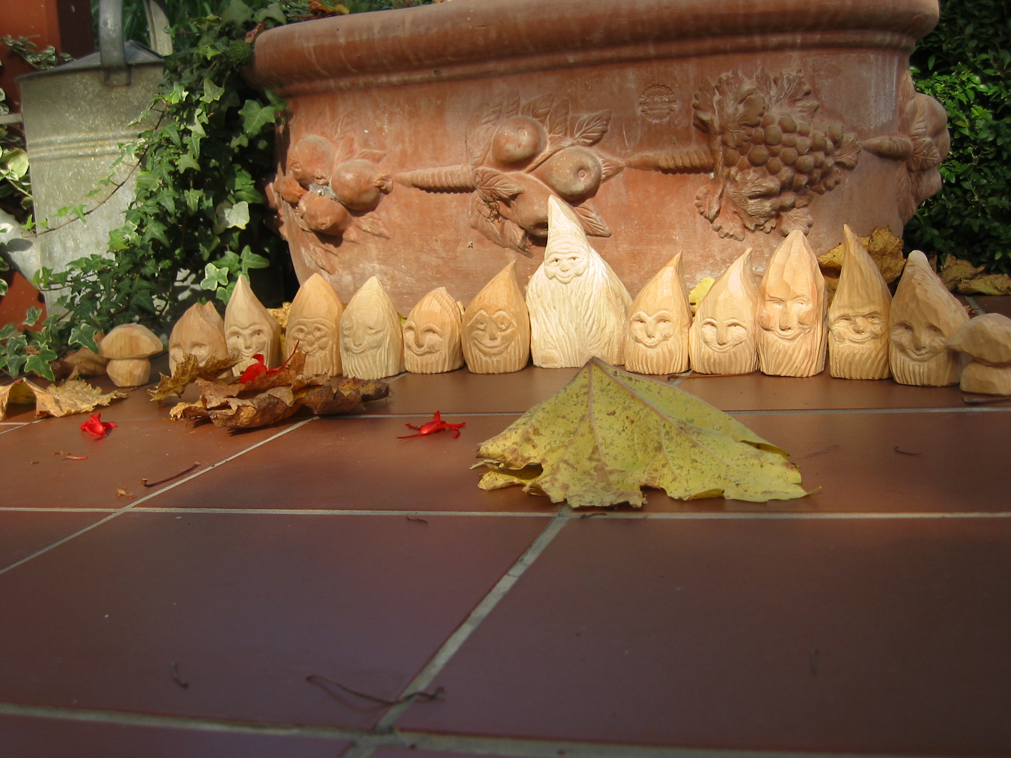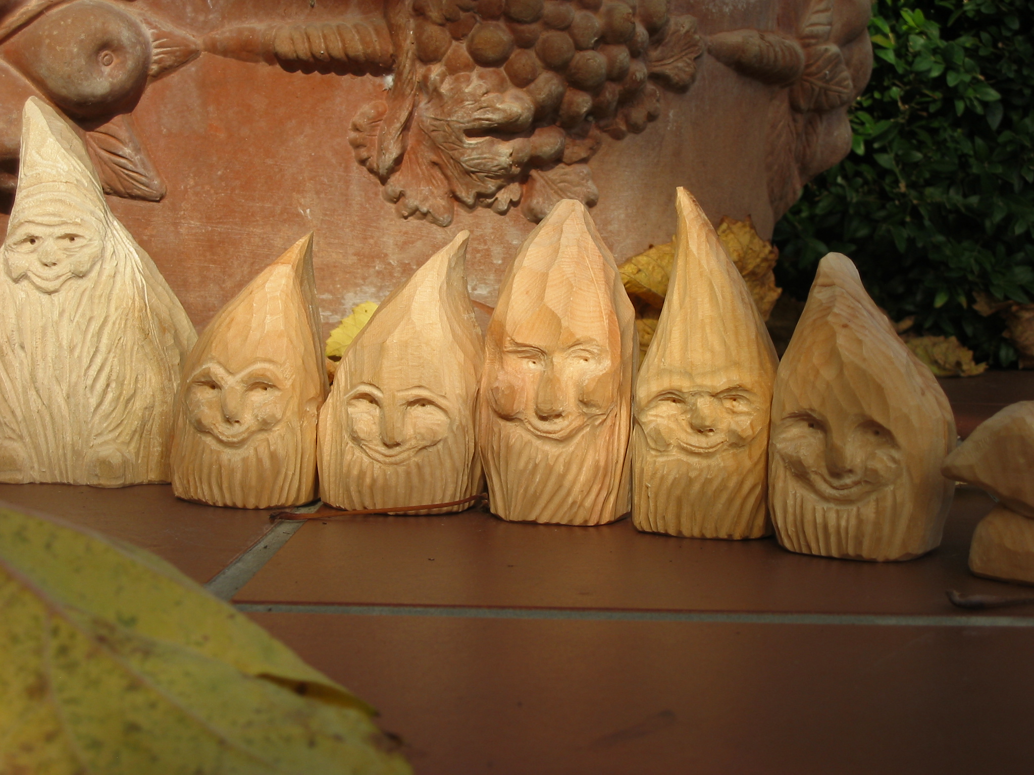Eine Holzzwergegemeinschaft im Herbst