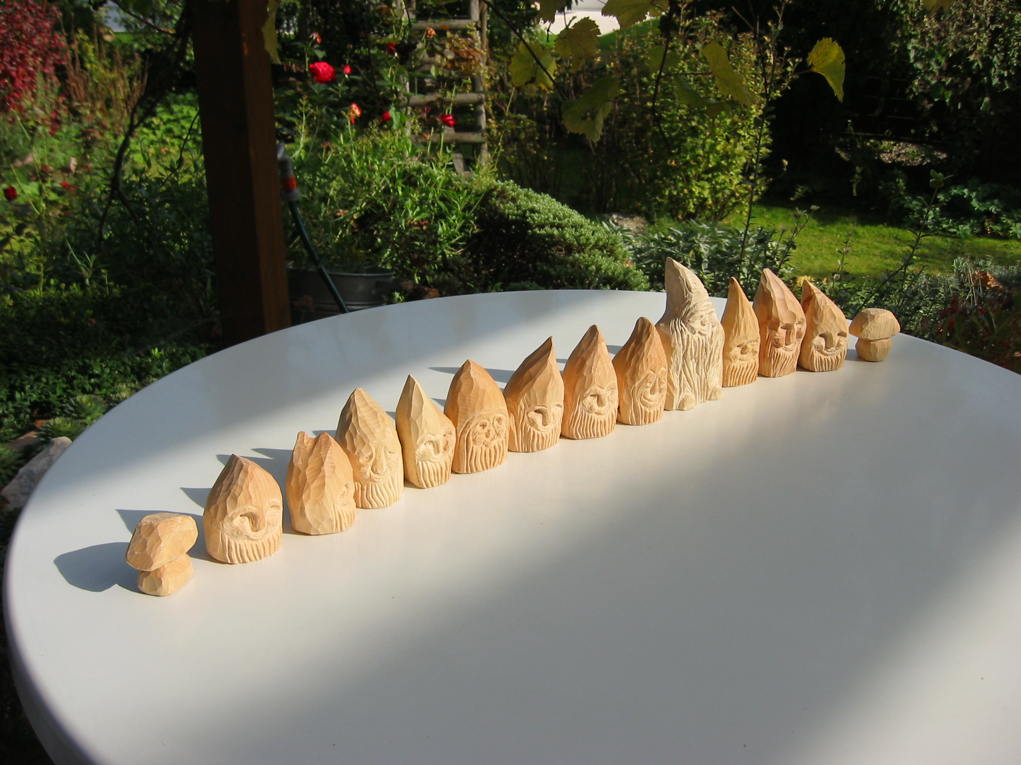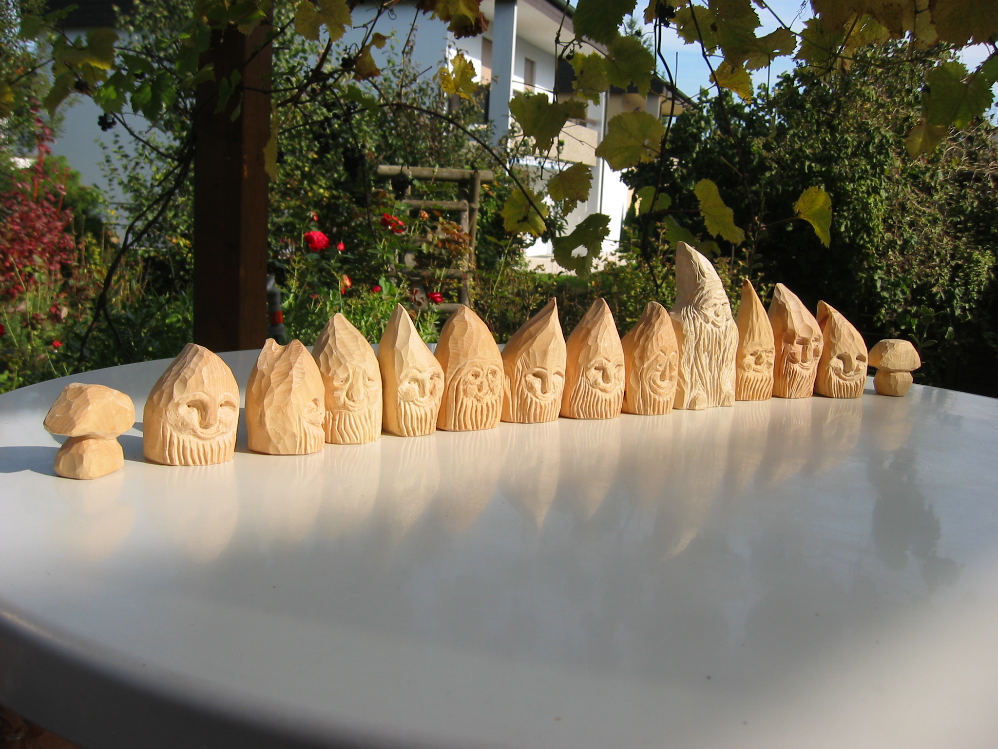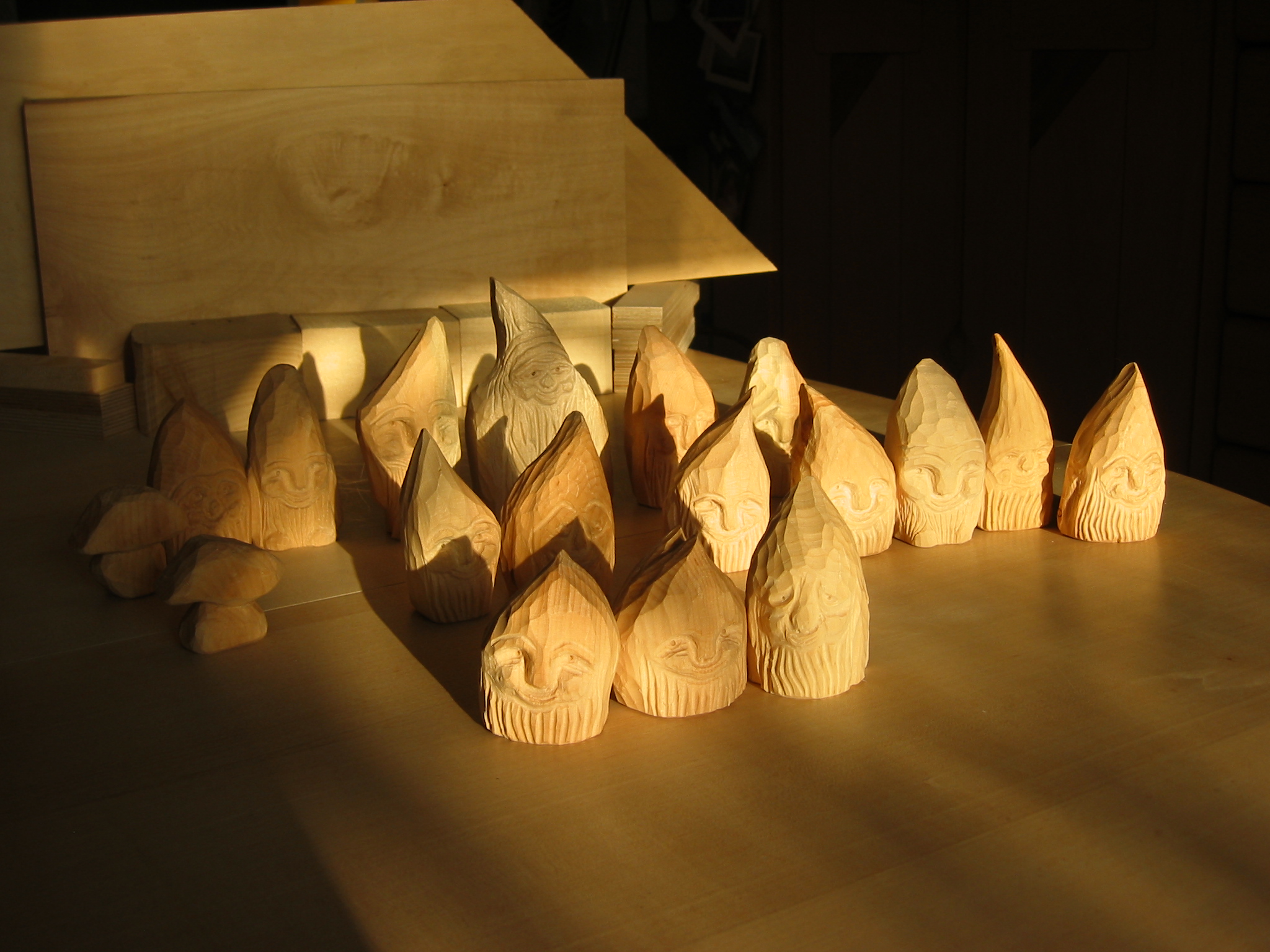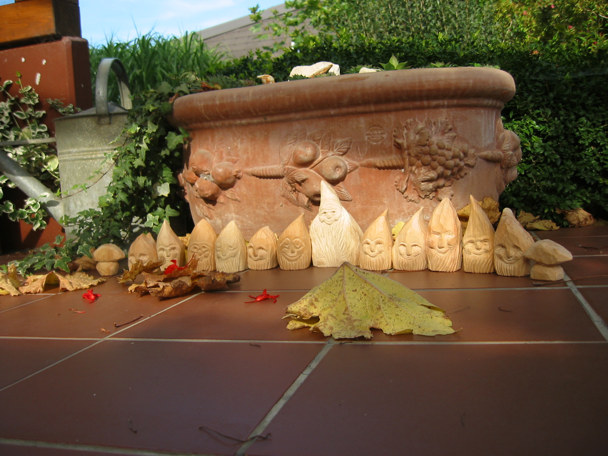 Eine Holzzwergegemeinschaft im Herbst