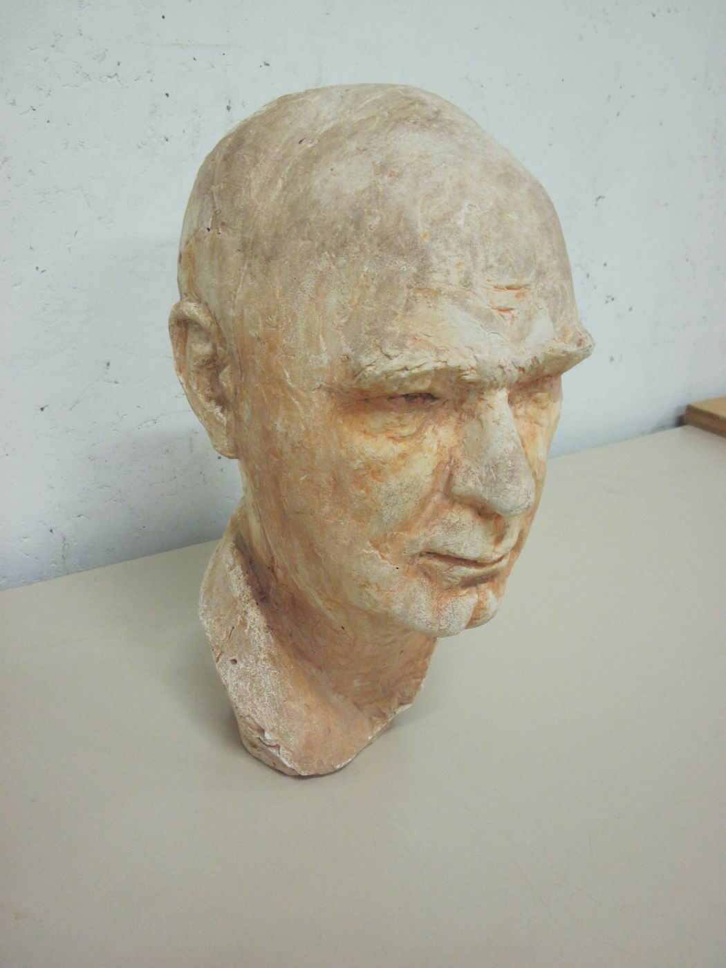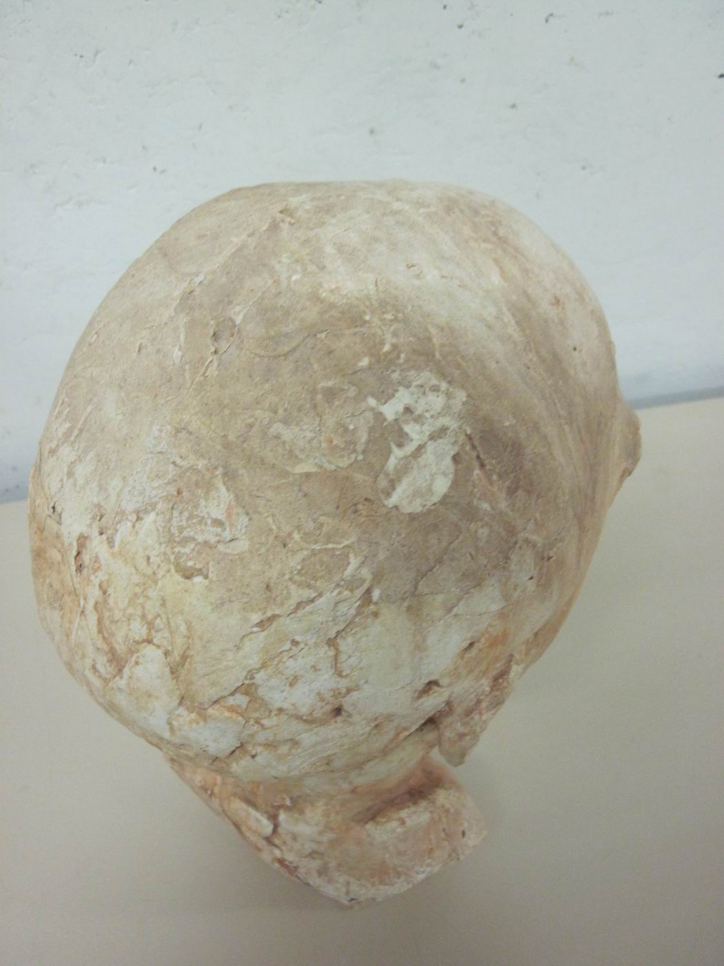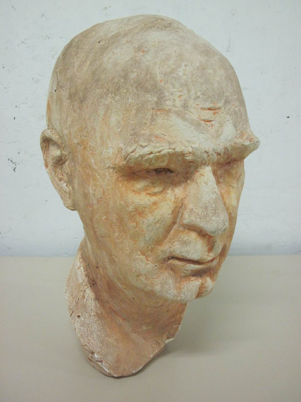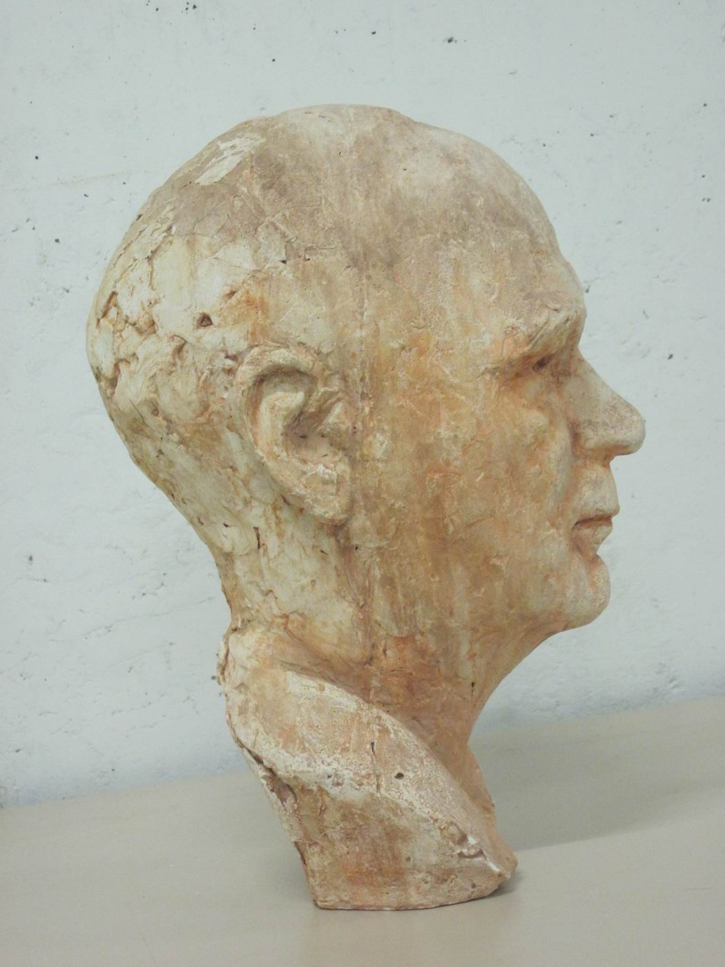 Nach Aussage von Anwesenden, welche anlässlich der Herstellung der gezeigten Fotoaufnahmen mit Restaurationen am Ort der Aufnahmen beschäftigt waren, handelt es sich hier um den Kopf eines Unbekannten, welcher angeblich beim Modellieren bei Probst in Peney in der Nähe von Genf nicht still sitzen konnte und dann diesen Kopf auch nicht entgegennehmen, nicht haben und nicht behalten wollte, worauf ihn angeblich eine öffentliche Institution geschenkt bekam, welche ihn jetzt zu ihrer Sammlung zählt. Dies sei vermutlich um 1963 geschehen (anlässlich der Auswahl von Großplastiken für größere öffentliche Gebäude in Dreiland). Unglaublich, wie Probst es geschafft hat, dem Material eine Psyche einzuhauchen, so dass es scheint, im Gips sein noch Leben drin! Es handelt sich bei der Figur um eine Großausführung in etwa drei bis vierfacher natürlicher Größe. (Probst soll nach der Aussage eines Anwesenden angeblich bemerkt haben: "Damit man ihn nicht übersieht.") Probst hat viele Großfiguren geschaffen. Ist eine große Figur einfacher zu machen - oder schwieriger - als eine kleine Figur? |