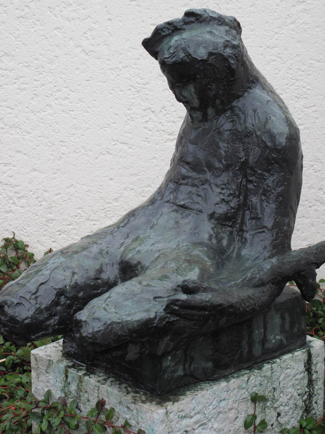 Jakob Probst, 1956, "Sterbender Krieger" (Kriegerdenkmal) für die Schlacht bei Dornach, in der Umfriedung der alten Mauritiuskirche, Dornach