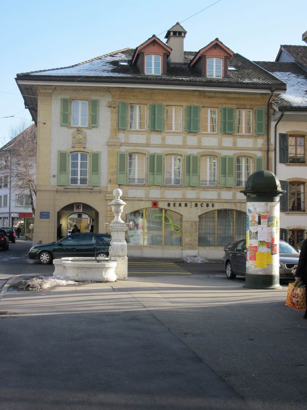 Das Gebäude der Berner Kantonalbank in Nidau ist erwähnt im Schweizerischen Kunstführer Nidau sowie in der Reihe über die Kunstdenkmäler der Schweiz. Das Haus mit der Barockfront von 1714 besaß bis etwa 1916 straßenseitig einen Anbau, der einige Meter in die heutige Strasse hinein ragte und zu der genannten Zeit der Strasse Platz machen musste. Der Anbau wurde damals weggerissen und durch einen Erweiterungsbau des Barockgebäudes mit Arkaden über dem Trottoir ersetzt. Jakob Probst bekam 1916 den Auftrag, eine Kunststeinkartusche mit dem Stadtwappen von Nidau zu liefern (Symbole Krebs und Fisch wie unten gezeigt, heraldische Farbe der Symbole rot). Das Wappen ist oben überhöht durch einen Frosch. Ebenso ist es unten unterlagert durch zwei Frösche. Frosch ist der Neckname der Nidauer. Im heute noch existierenden, an der Fassade des Anbaus von 1916 zum Barockgebäude angebrachten Wappen sind die Wappensymbole in Gold gehalten. Die Wappenfarbe Gold bedeutete früher eine große, nur durch den Kaiser oder den Papst verliehene Ehre. Nach der Reformation und besonders nach der auch in die heutige Schweiz exportierten französischen Revolution verlor die höchste Obrigkeit die Ehre, Ehrenzeichen verleihen zu können, weil die Untertanen diese Ehre nicht mehr anerkennend wahrnahmen. Daher werden die alten Wappenregeln heute oft nicht mehr beachtet. Manchmal sieht man, dass sogar früher unmögliche, unstatthafte Farben wie braun darin verwendet werden. |
