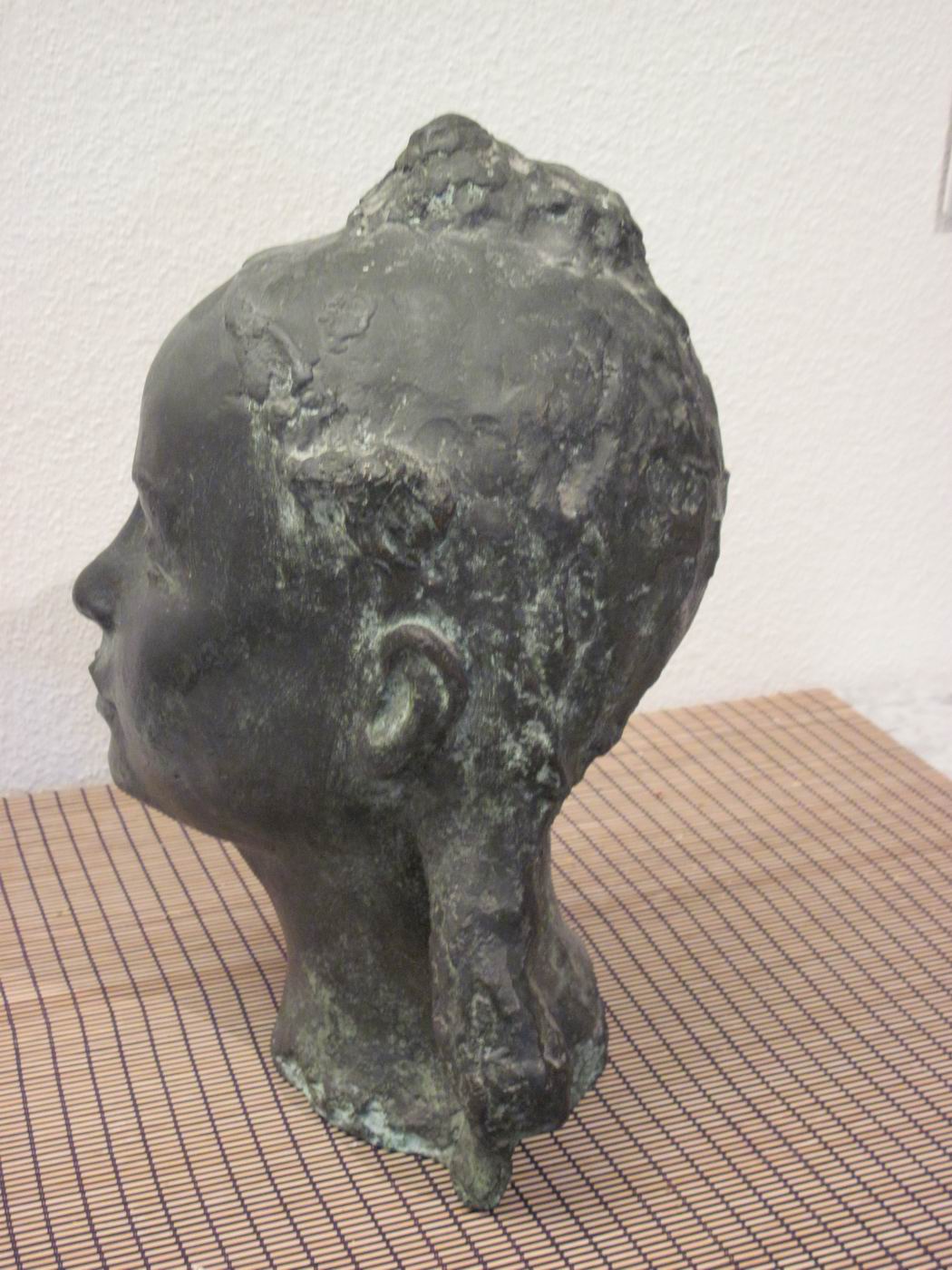 Jakob Probst, vermutl. 1936 (späterer Abguss) oder ev. auch um 1945, Mädchenkopf mit Zöpfen, vom Besitzer "Bettina" genannt, Privatbesitz, Niederalem.CH