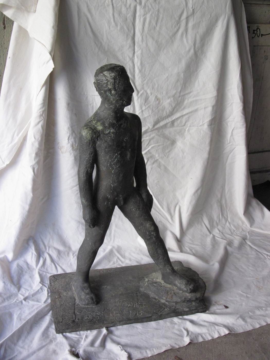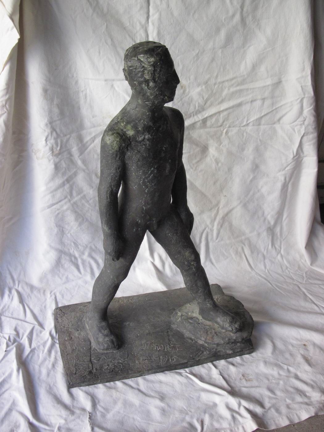 Vermutliche Werkgeschichte: Modelliert 1915 (Aufschrift auf der Plastik), gegossen 1957, dann vorerst in Privatbesitz in Olten, danach verkauft um 1980 durch eine Galerie in Zofingen ins Tal der hinteren Frenke. |