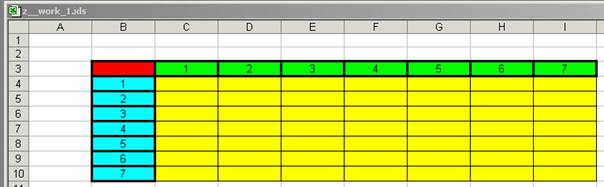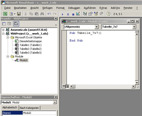 Namen Tabelle_7x7 angelegt, in der noch kein Programmcode vorhanden ist. Hier