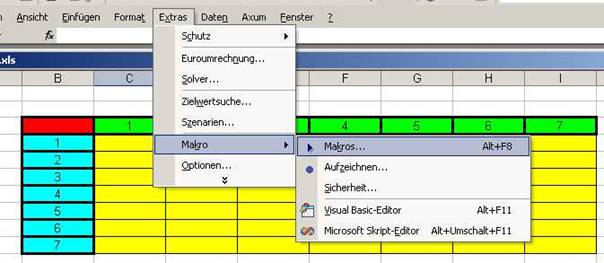 Tabelle3 in die Zelle A1 und rufen unter „Extras è Makro è Makros…“ mit Hilfe von „Ausführen“ unser